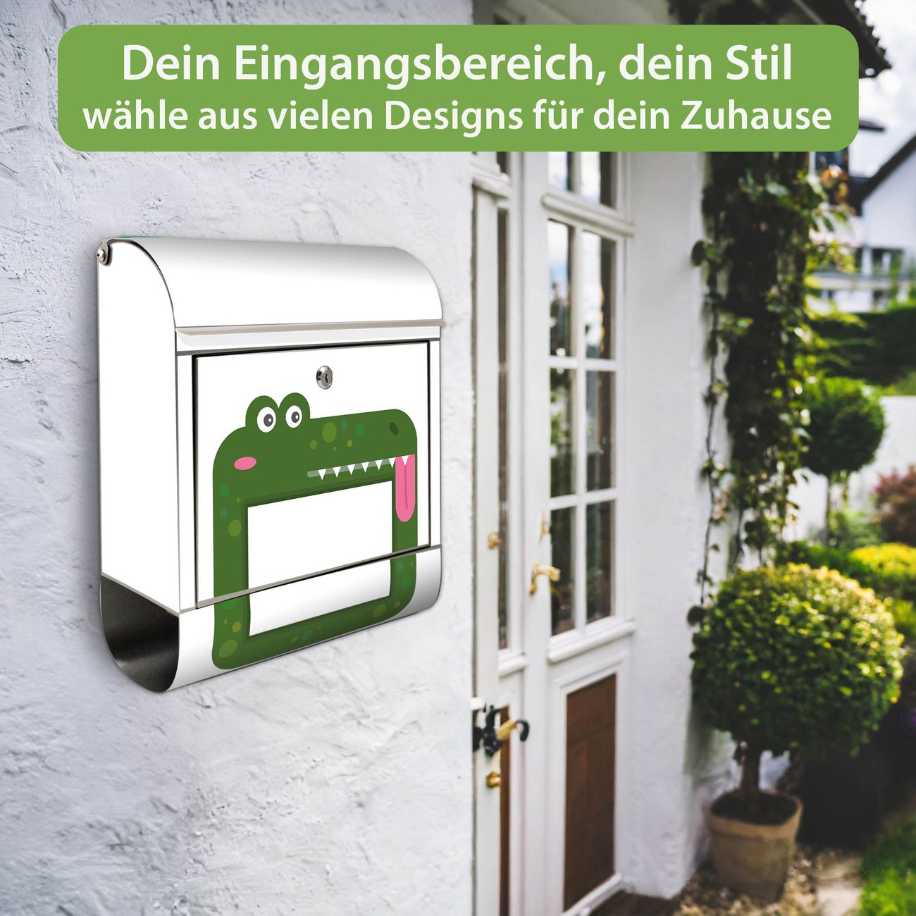 Wandbriefkasten Edelstahl Motiv Krokodil Bilderrahmen
