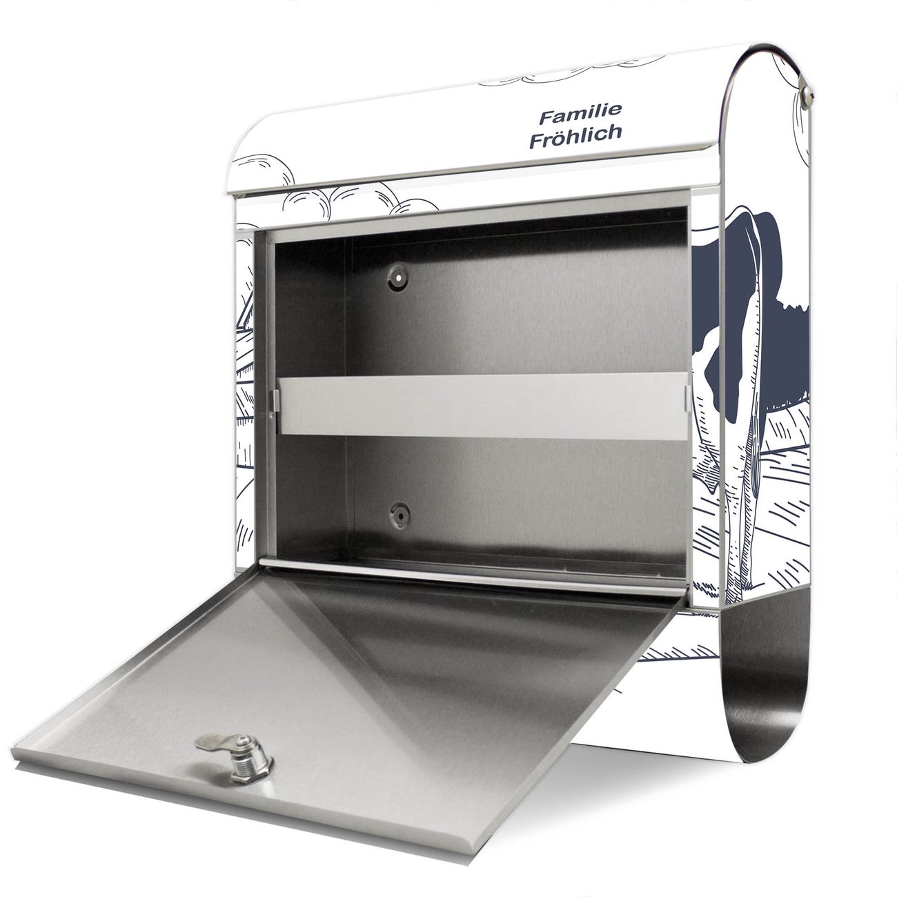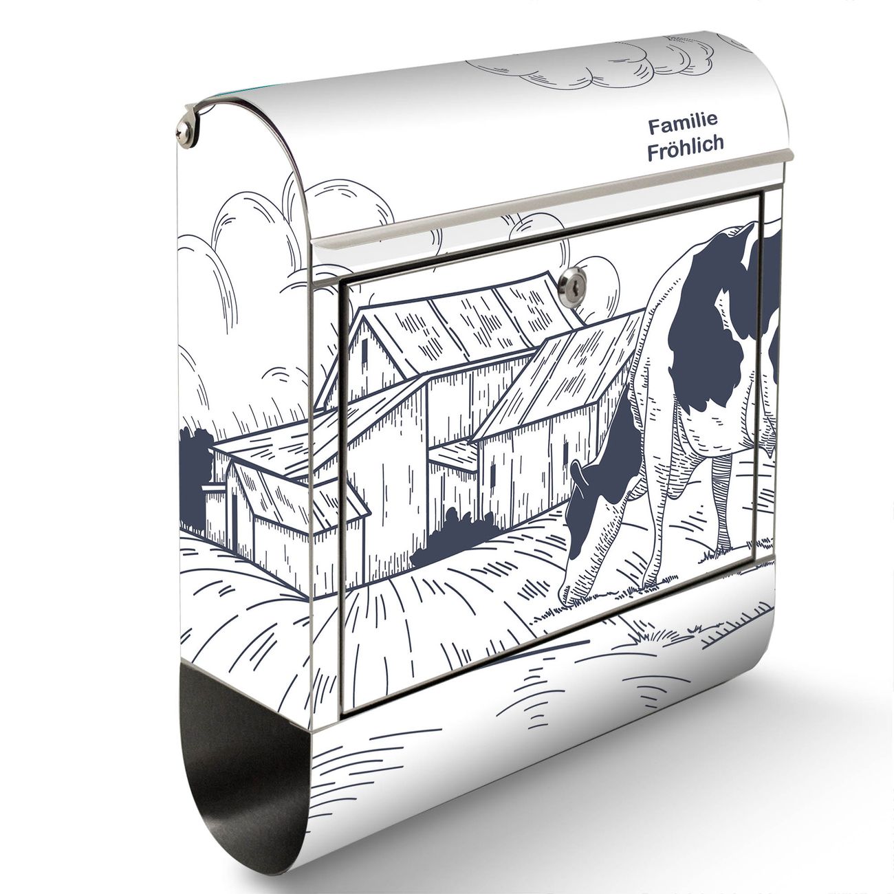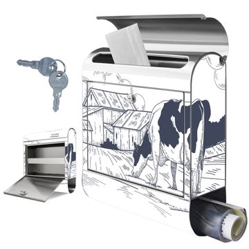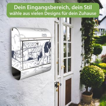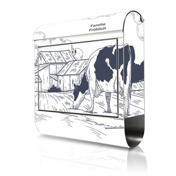 Wandbriefkasten Edelstahl Motiv Ländliche Idylle mit Kuh