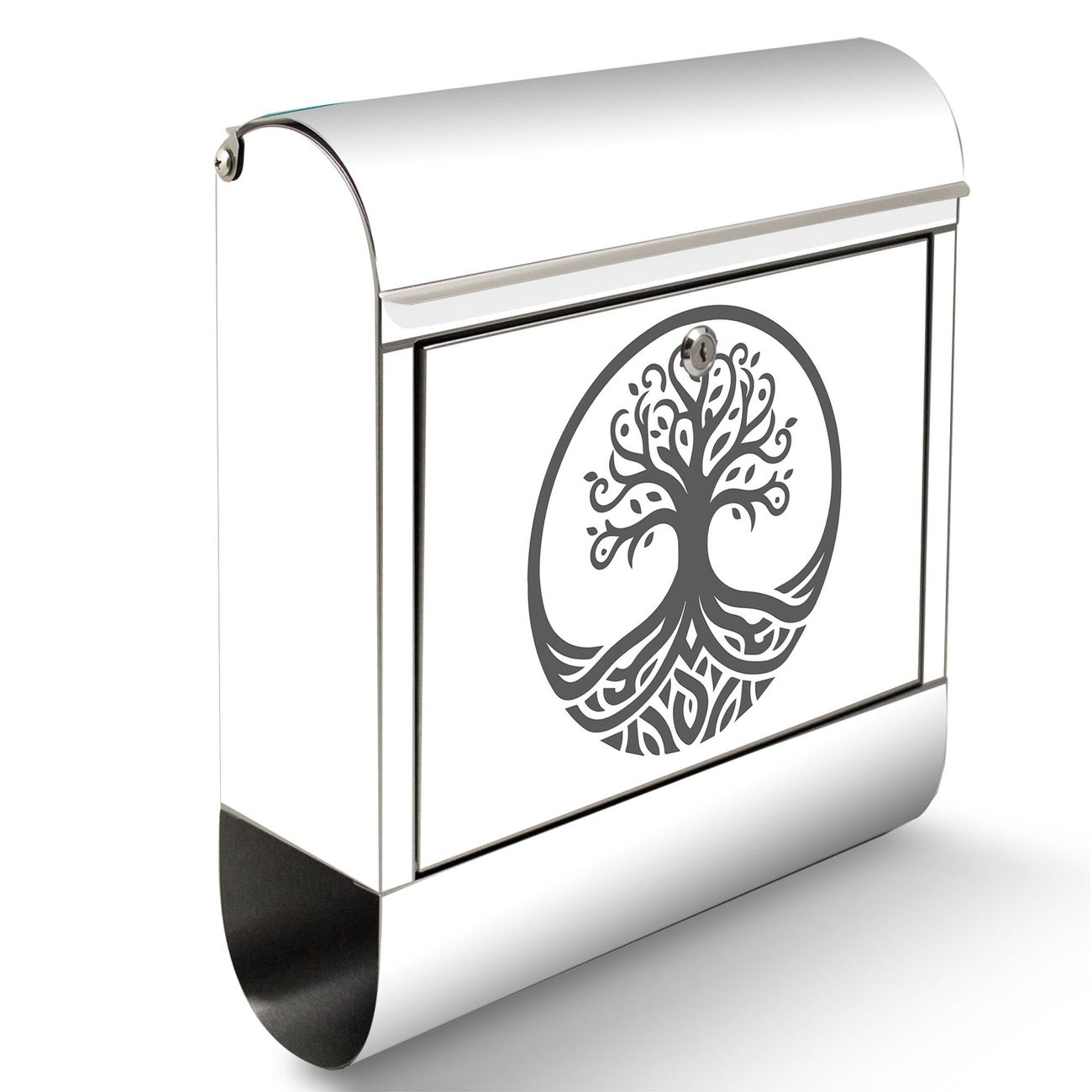 Wandbriefkasten Edelstahl Motiv Lebensbaum Silhouette 2
