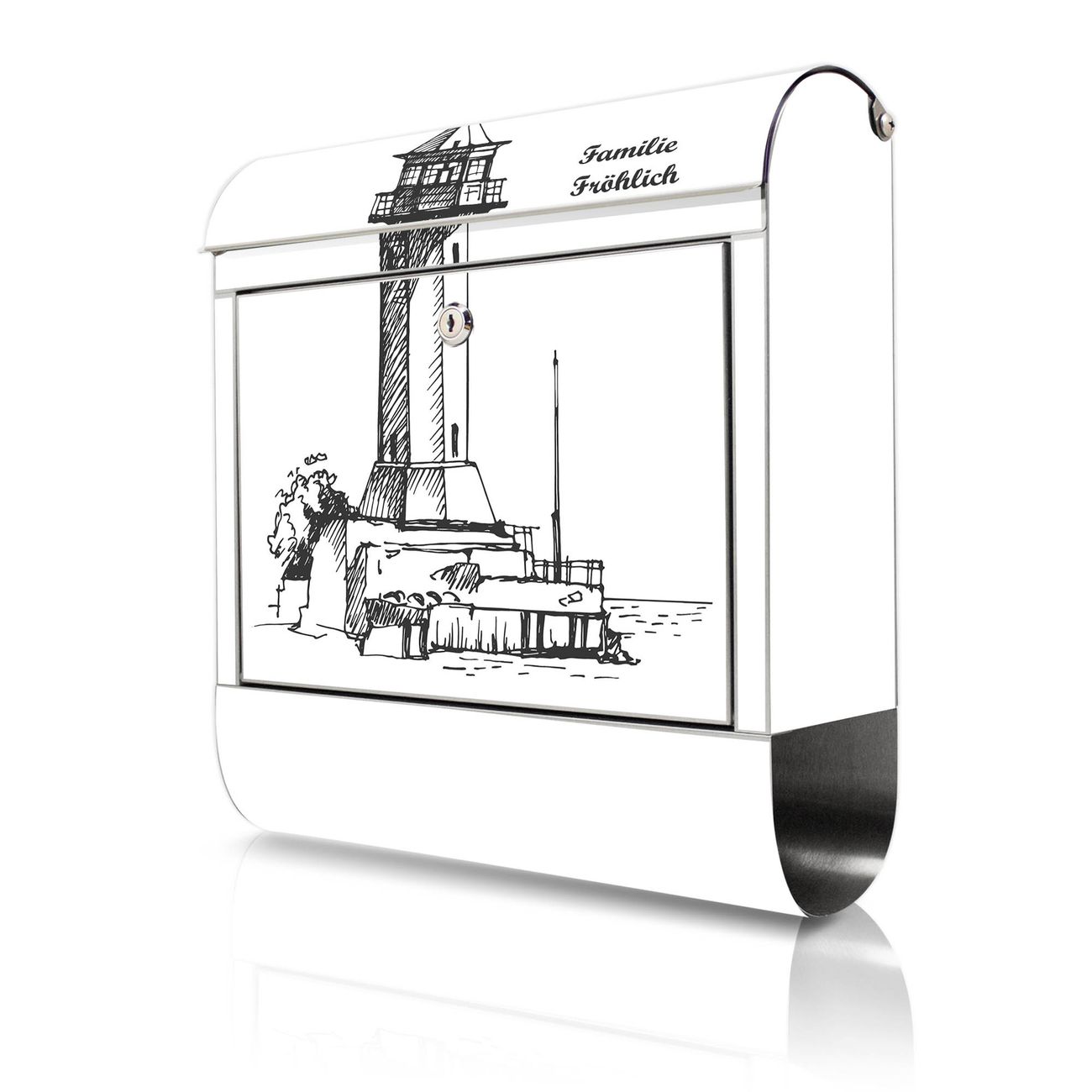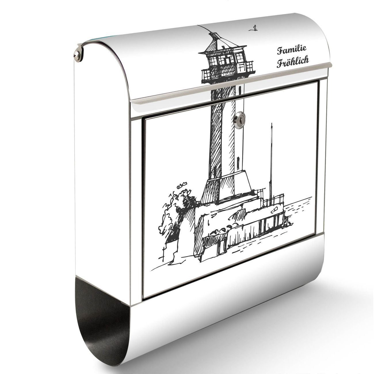 Wandbriefkasten Edelstahl Motiv Leuchtturm 10
