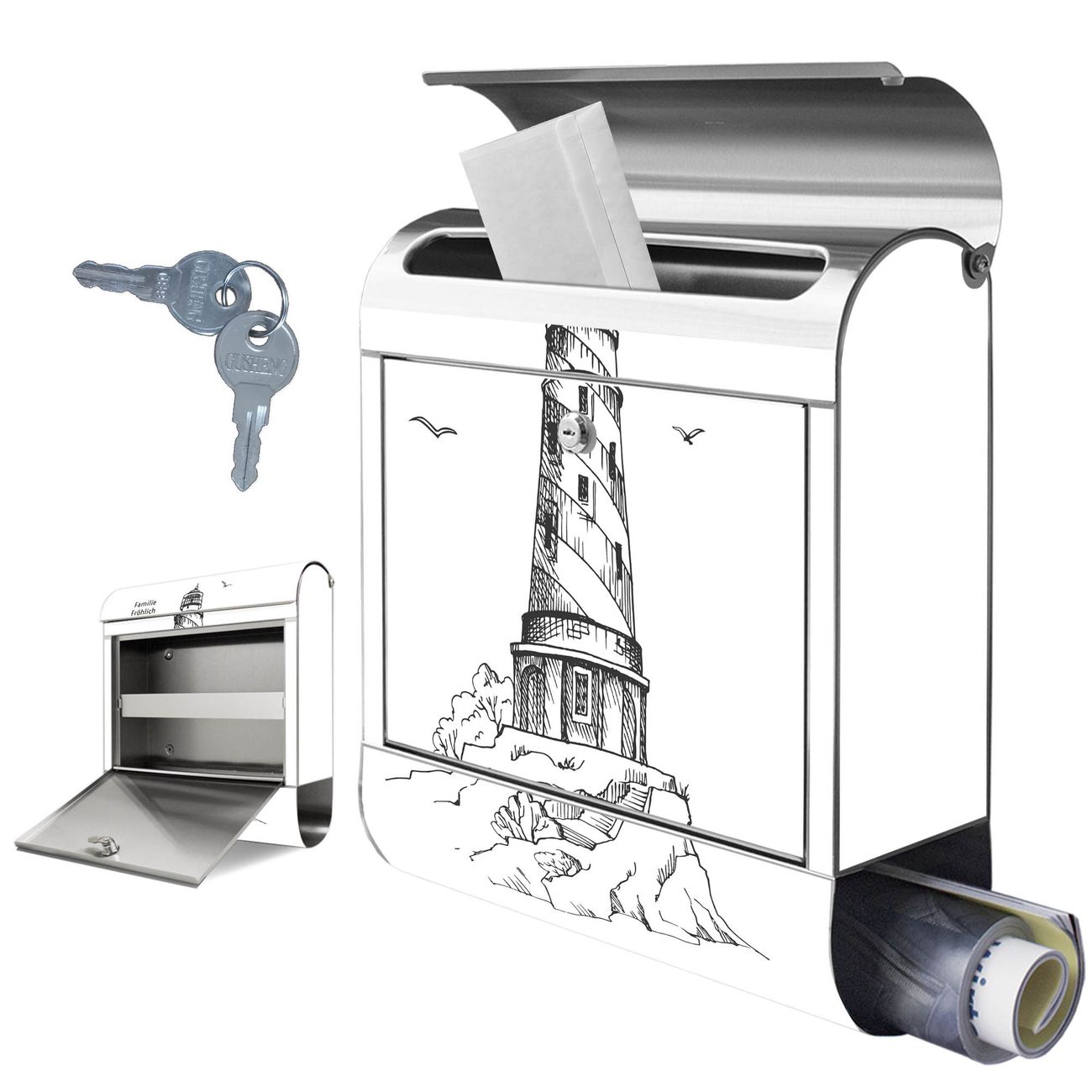 Wandbriefkasten Edelstahl Motiv Leuchtturm 7