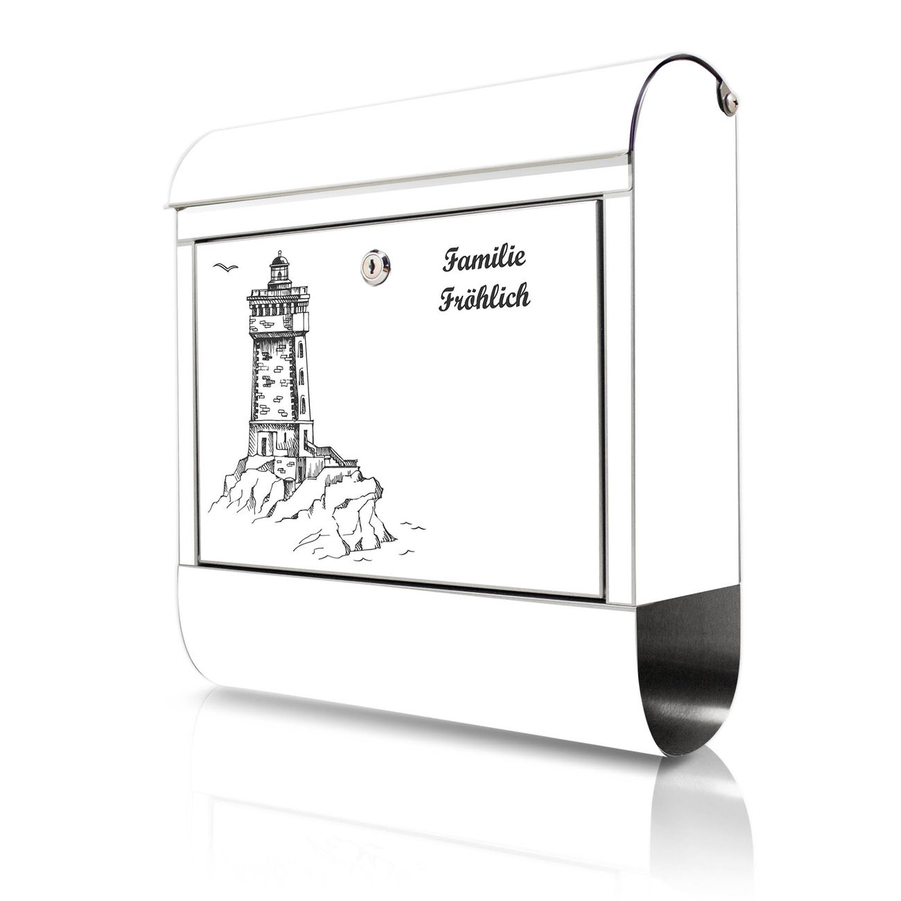 Wandbriefkasten Edelstahl Motiv Leuchtturm 8