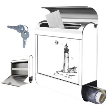 Wandbriefkasten Edelstahl Motiv Leuchtturm 9