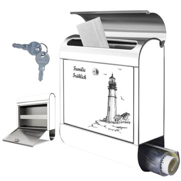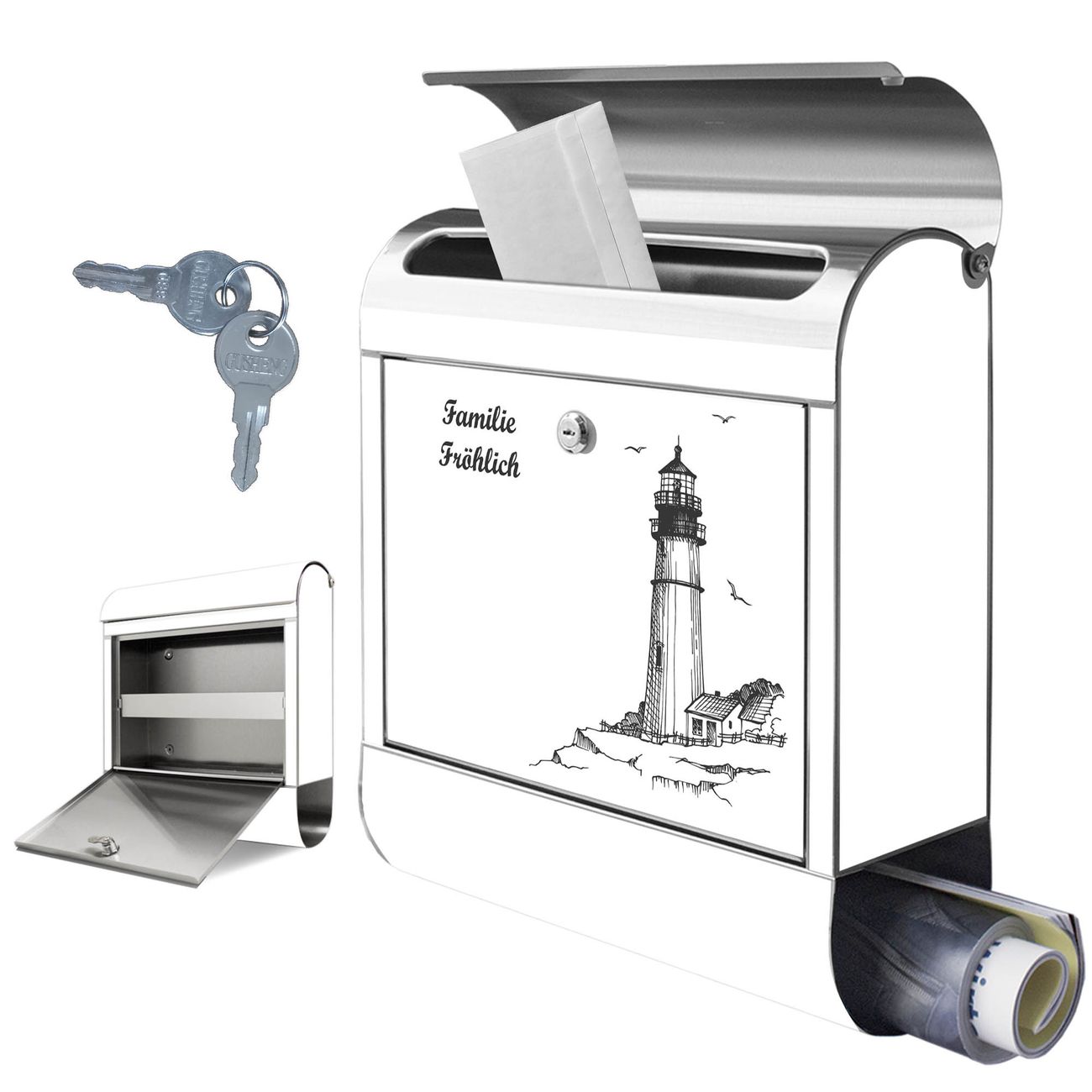Wandbriefkasten Edelstahl Motiv Leuchtturm 9
