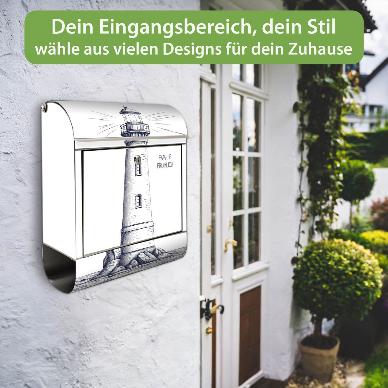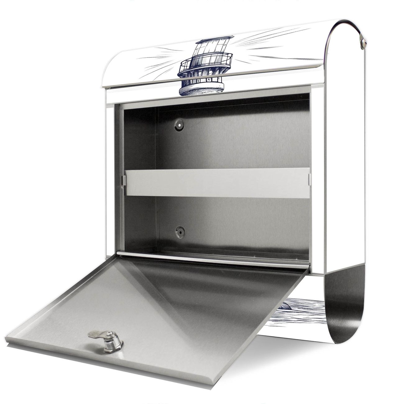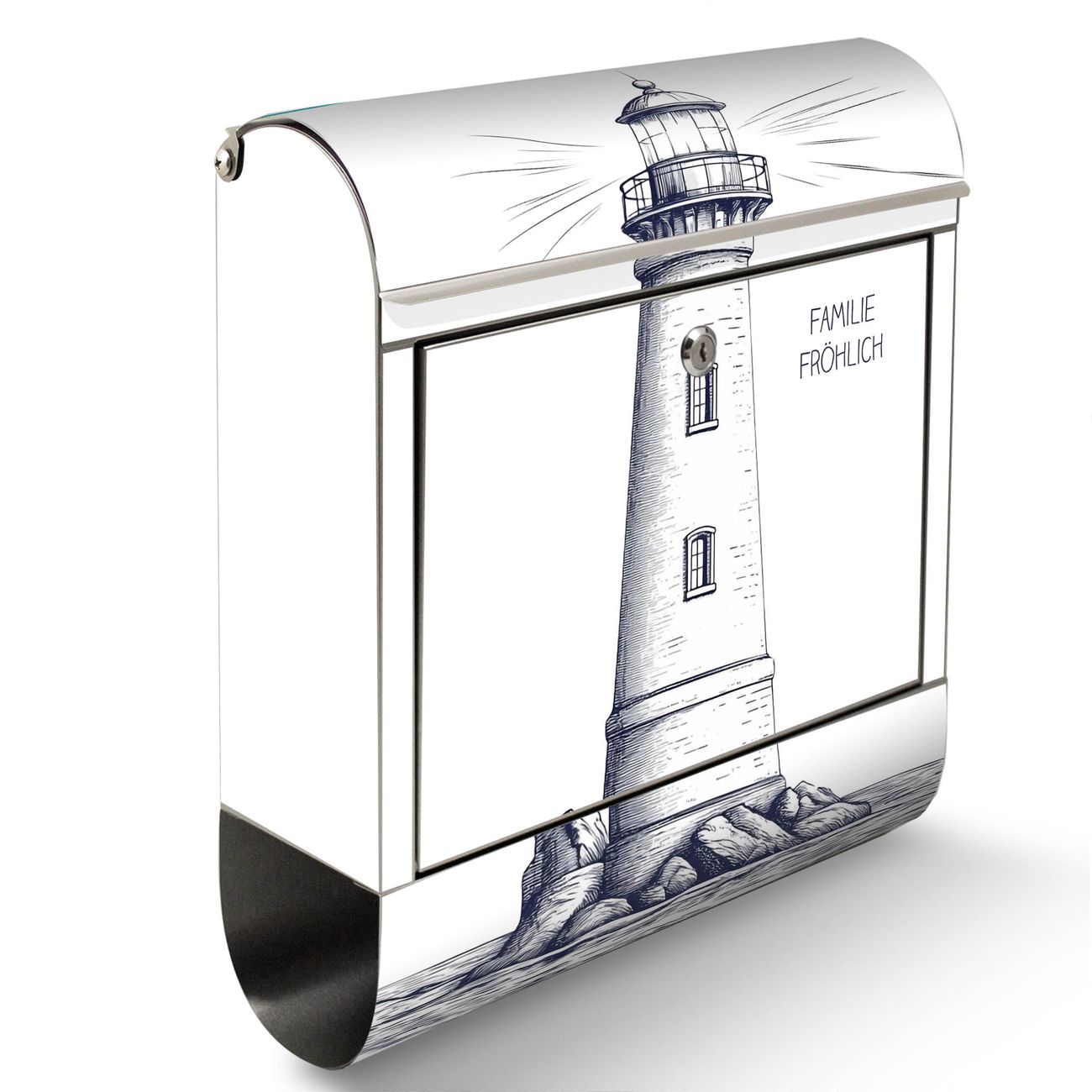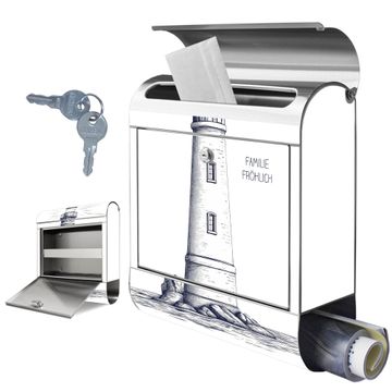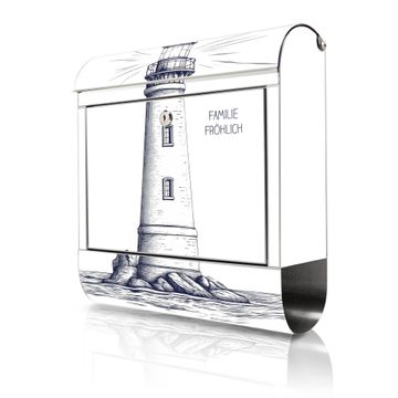 Wandbriefkasten Edelstahl Motiv Leuchtturm-Skizze