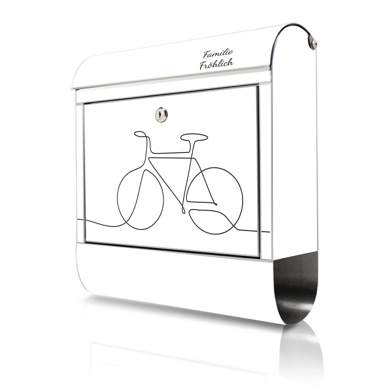Wandbriefkasten Edelstahl Motiv Lineart Fahrrad