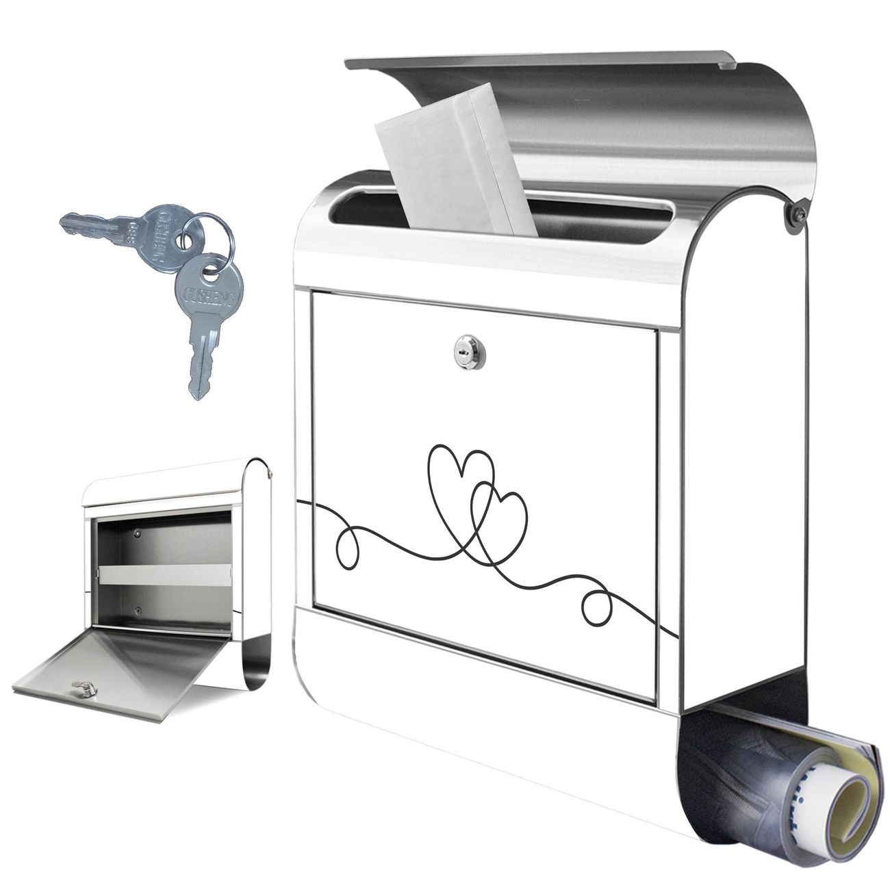 Wandbriefkasten Edelstahl Motiv Lineart Herz