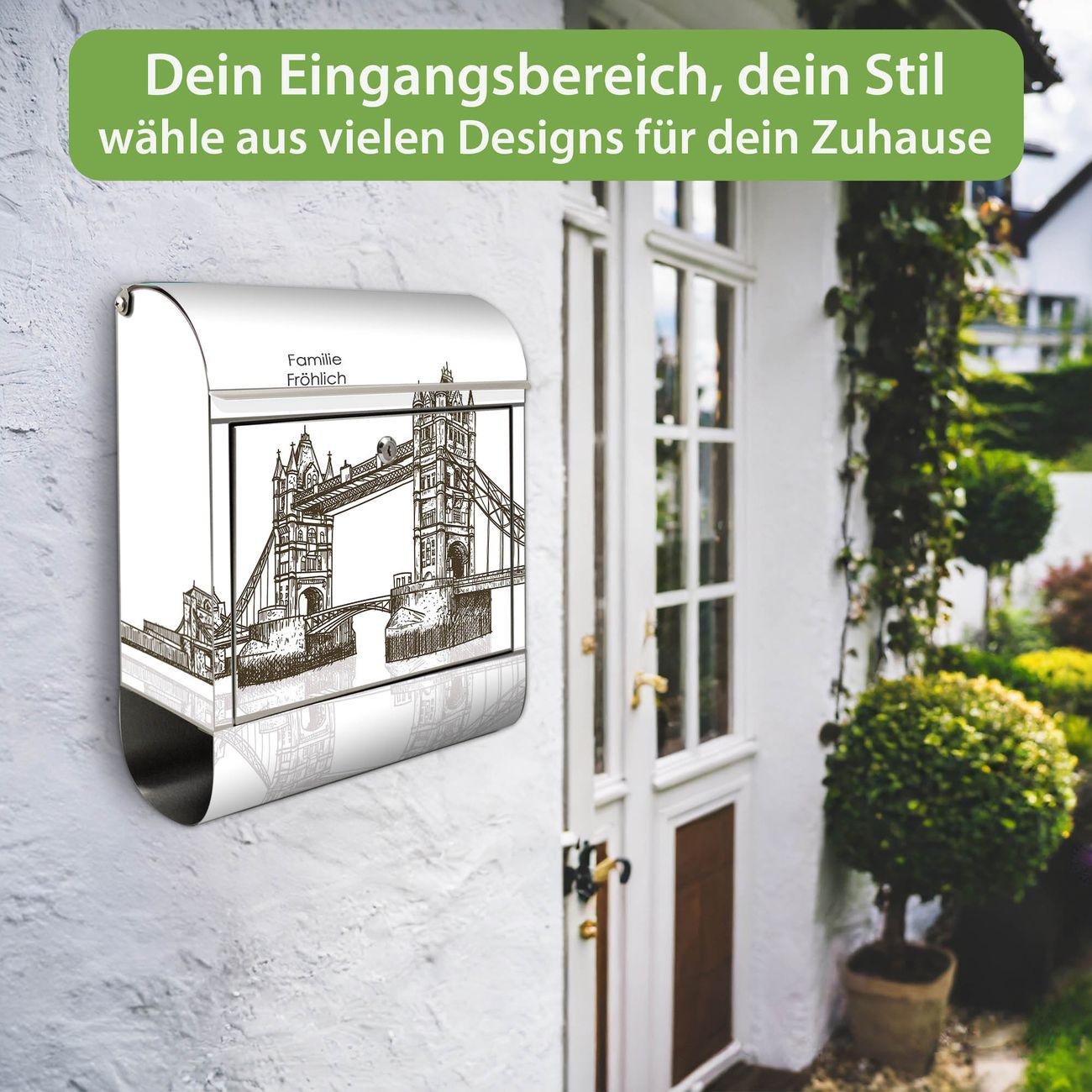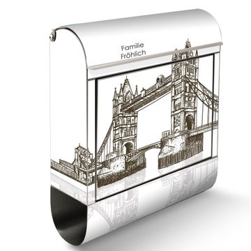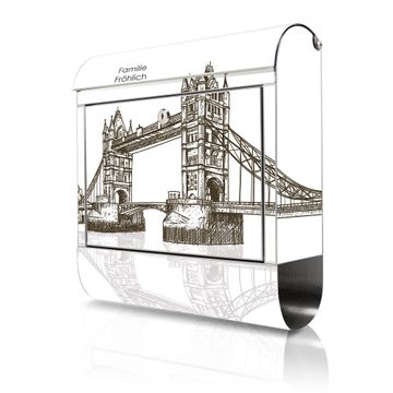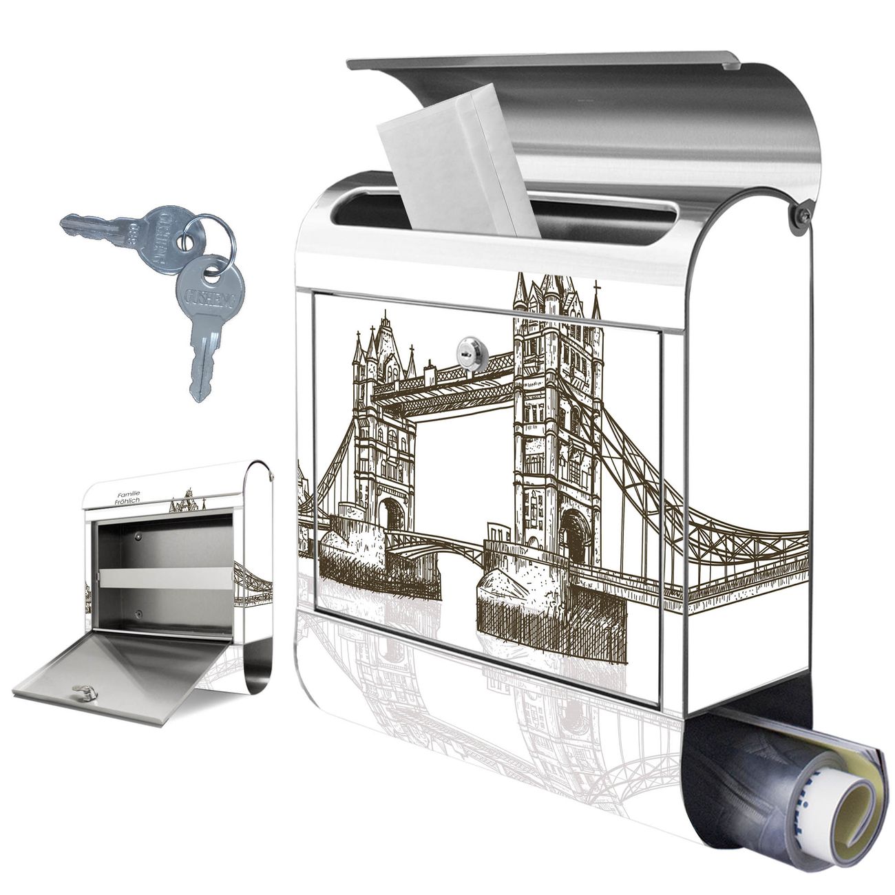 Wandbriefkasten Edelstahl Motiv London Brücke Skizze