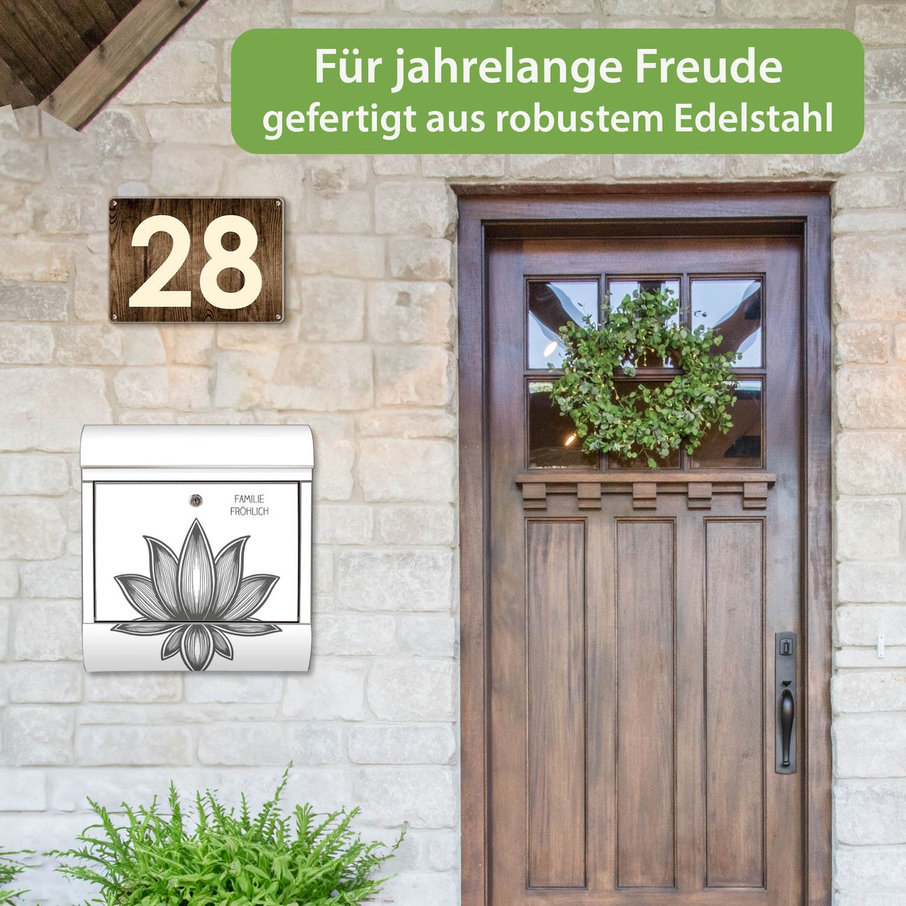 Wandbriefkasten Edelstahl Motiv Lotusblüte 10