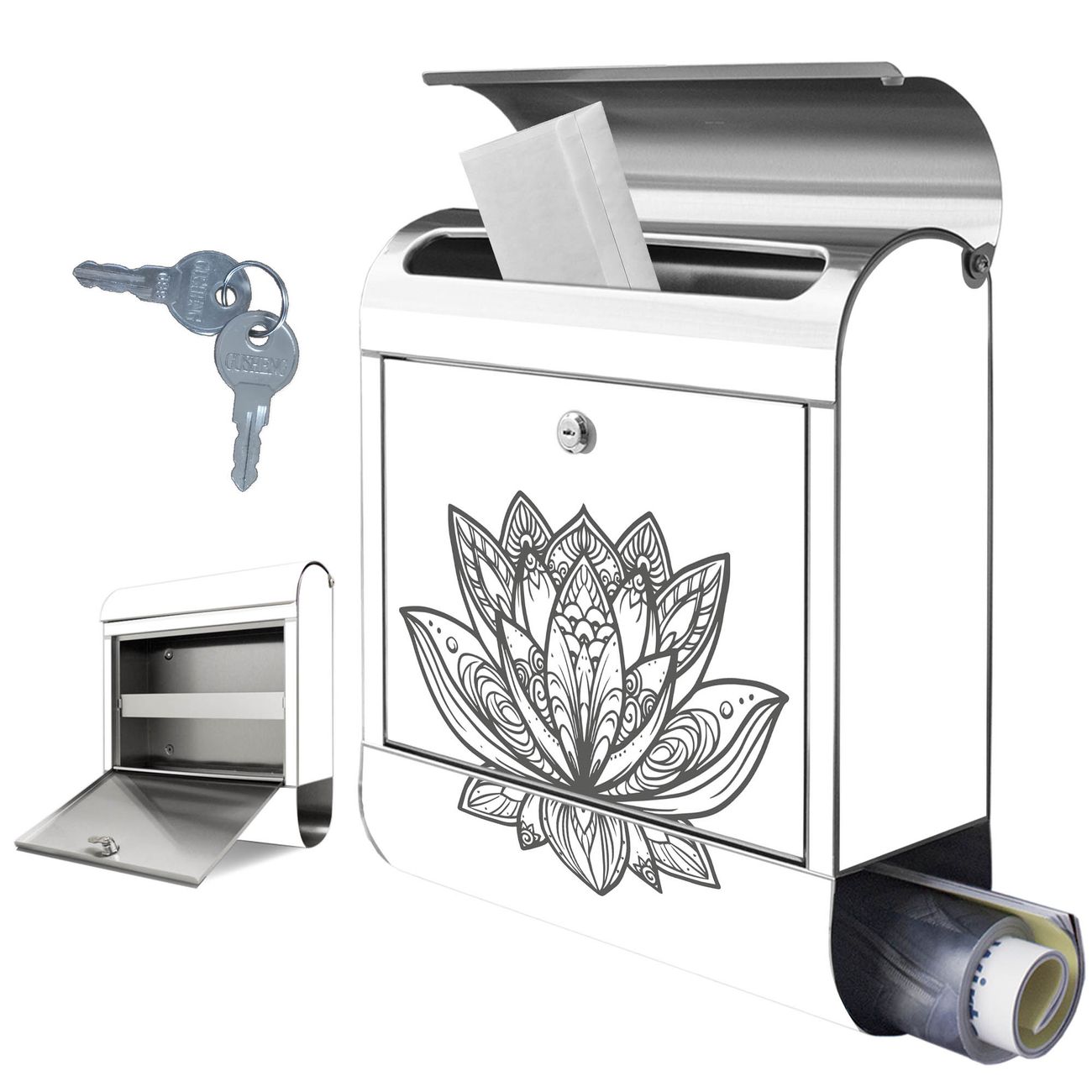 Wandbriefkasten Edelstahl Motiv Lotusblüte 8