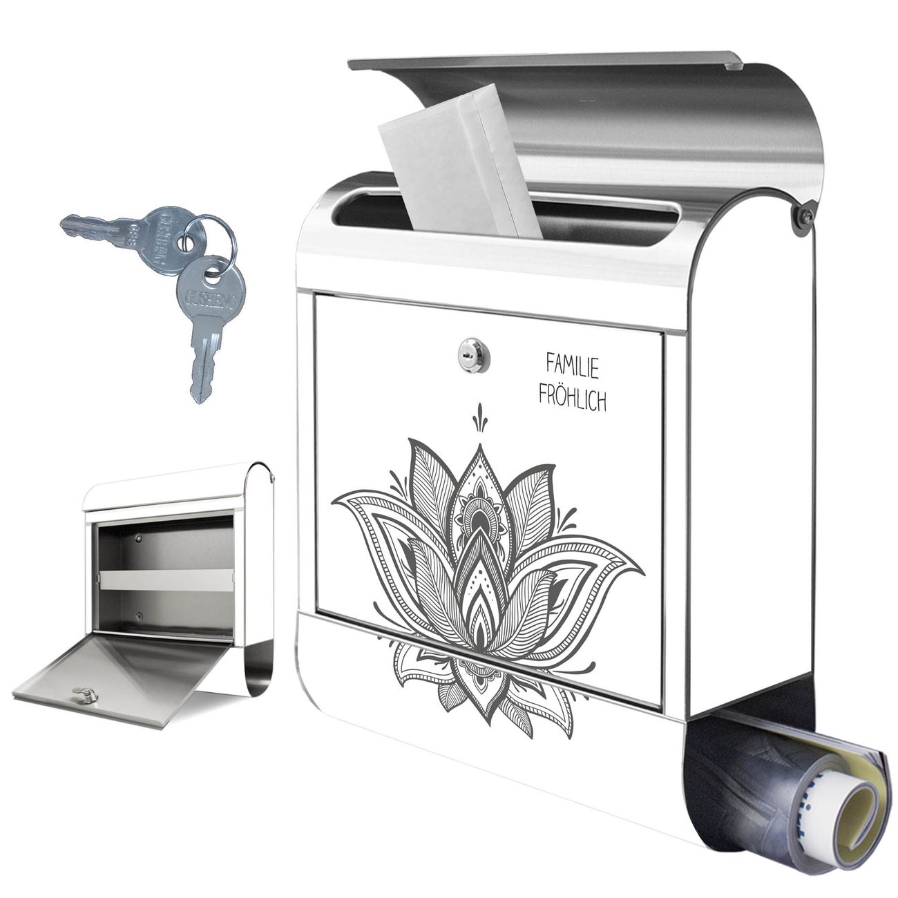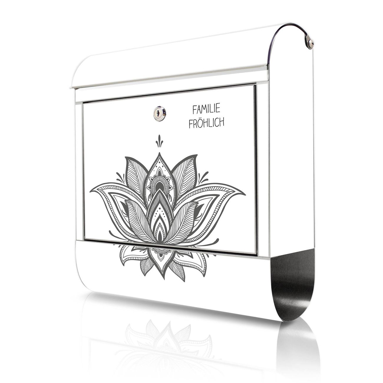 Wandbriefkasten Edelstahl Motiv Lotusblüte 9