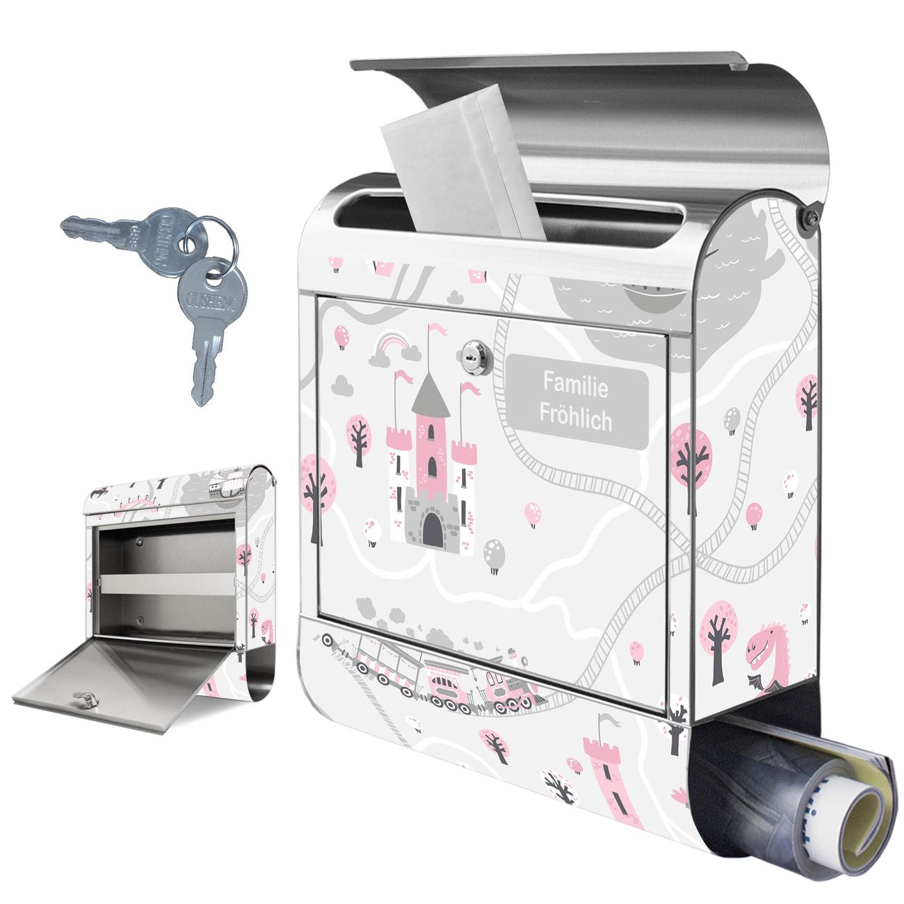 Wandbriefkasten Edelstahl Motiv Märchendorf 1