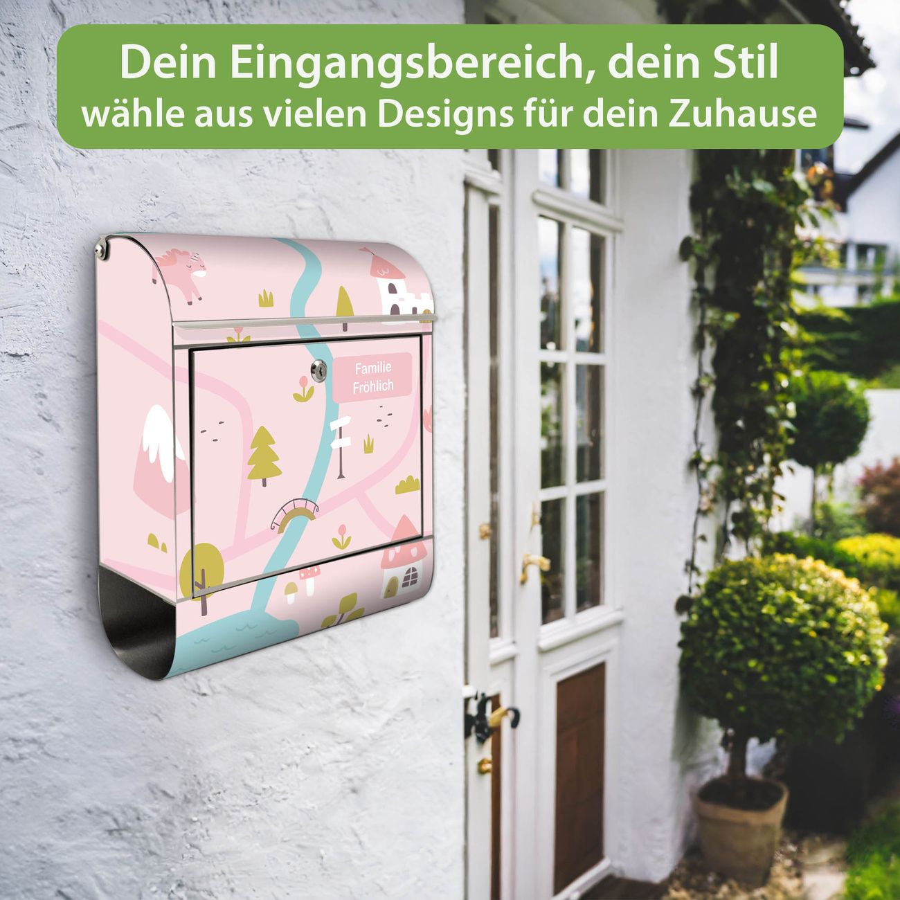 Wandbriefkasten Edelstahl Motiv Märchendorf 2