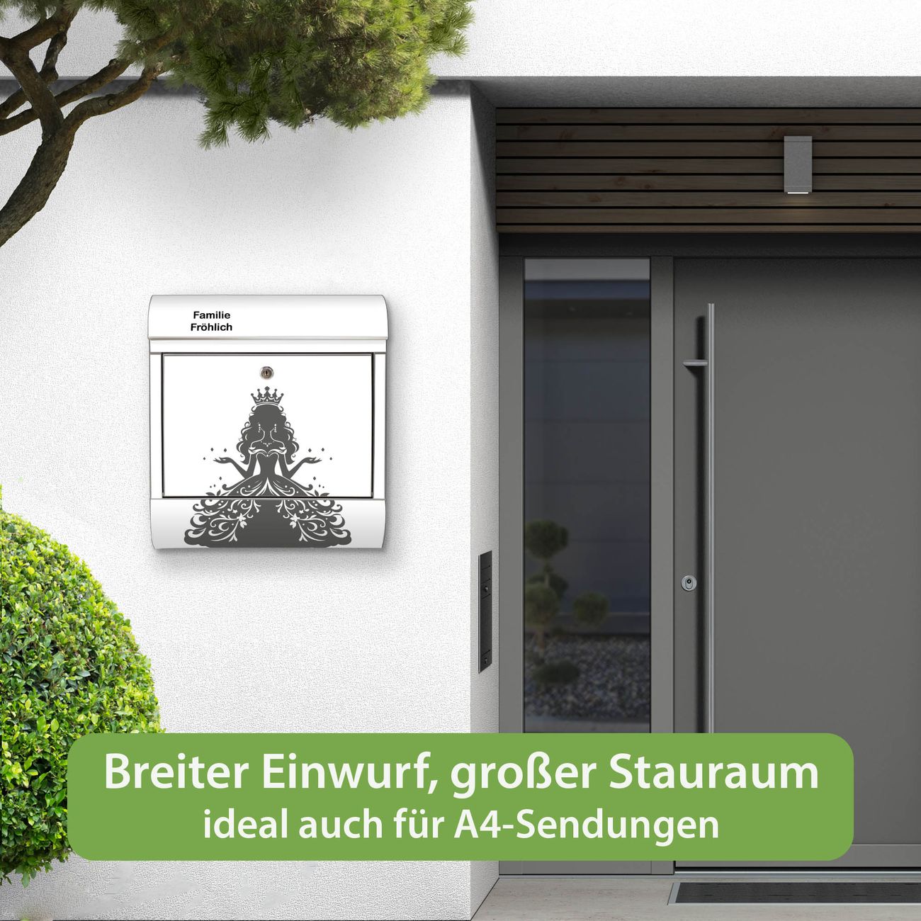Wandbriefkasten Edelstahl Motiv Märchenprinzessin