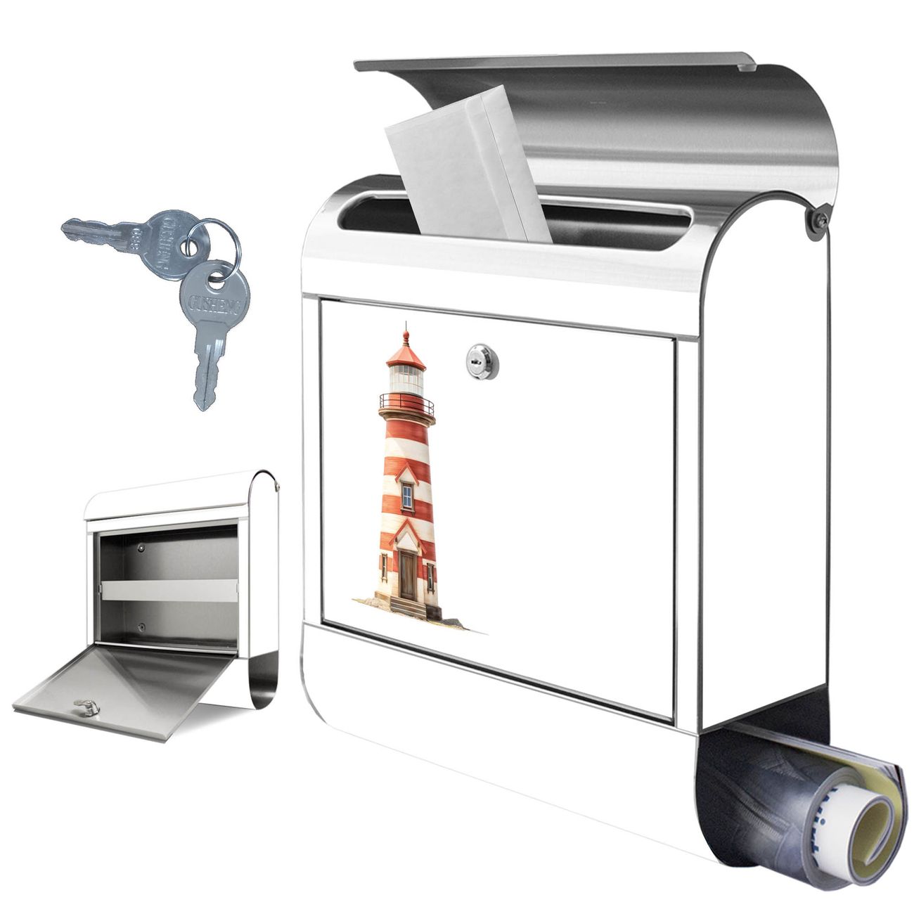 Wandbriefkasten Edelstahl Motiv Maritimer Leuchtturm