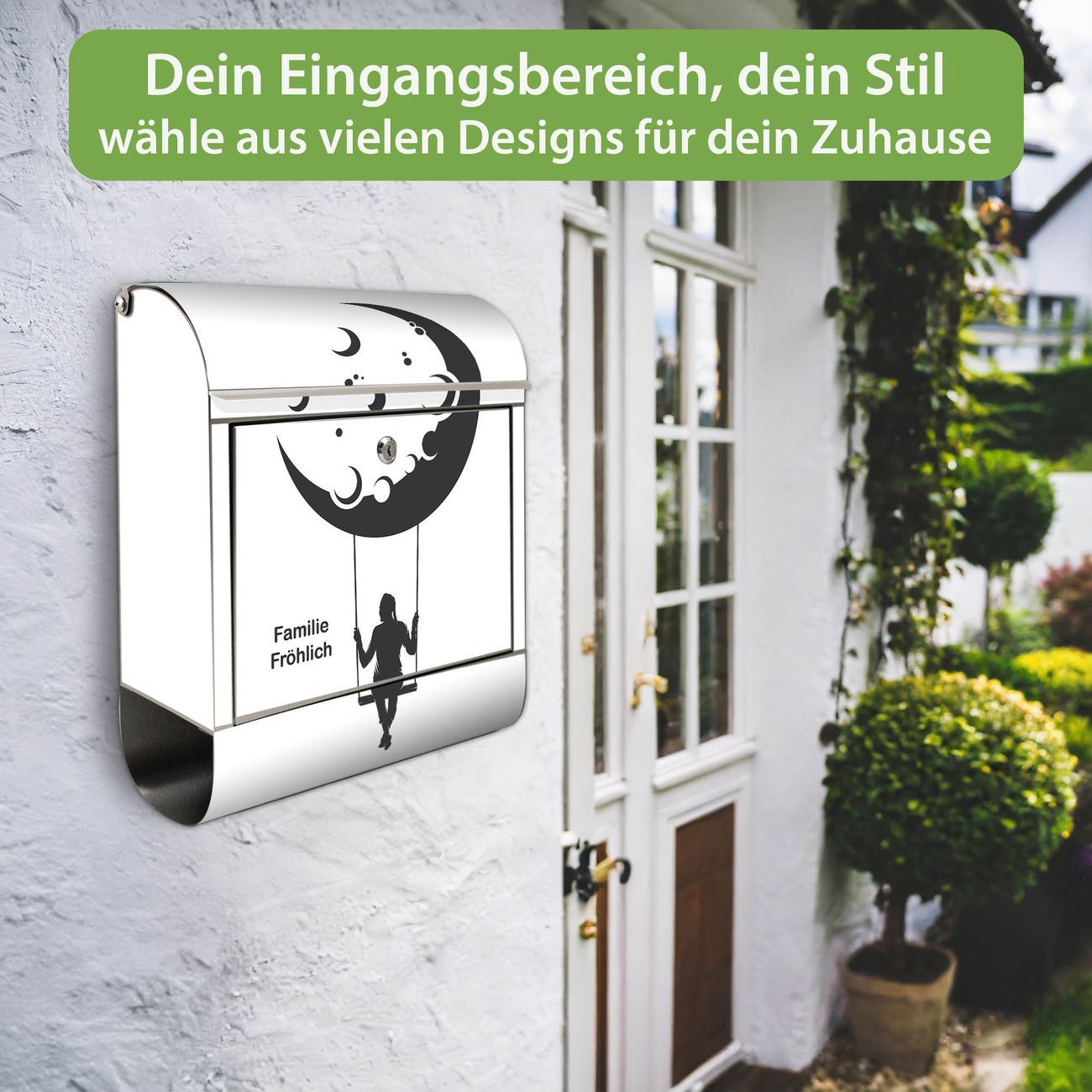 Wandbriefkasten Edelstahl Motiv Mondschaukel