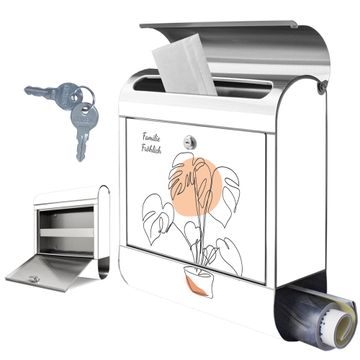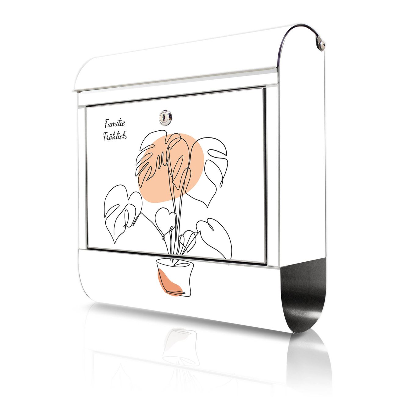 Wandbriefkasten Edelstahl Motiv Monstera Lineart