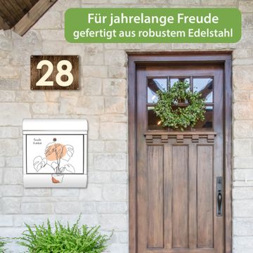 FUNKTION: Der banjado Edelstahl Briefkasten mit Motiv Motiv Monstera Lineart bietet Ihnen mit seinem Fassungsvermögen genügend Platz auch für große A4 Sendungen. Das integrierte Zeitungsfach eignet sich hervorragend um unkompliziert die Tageszeitung zu fassen. Auf Wunsch können Sie bei uns den passenden Ständer kaufen und so aus dem Wandbriefkasten einen Standbriefkasten machen. DESIGN: Der Motivbriefkasten hat ein sehr ansprechendes und ausgefallenes Design, damit entlocken Sie Ihren Nachbarn und dem Postboten ein Lächeln. Heben Sie Sich ab von der tristen grauen Masse ohne auf Funktionalität zu verzichten. DETAILS: Der Design Briefkasten mit Motiv Motiv Monstera Lineart besteht aus hochwertigem 18/0 Edelstahl. Das Motiv besteht aus einer wetter- und UV-resistenten Folie, die mit einem Schutzlaminat überzogen ist. Der Briefkasten wird mit Montagematerial und zwei Schlüsseln geliefert. NUTZEN: Sie können diesen Briefkasten sowohl als Wandbriefkasten montieren oder einen passenden Ständer auswählen und als Standbriefkasten einbetonieren. Die Größe bietet genügend Platz für Sendungen aller Art, das hochwertige Edelstahl ist rostfrei und die Motivfolie absolut wetterfest. SCHUTZ: Um Ihre Post optimal vor Witterungseinflüssen wie Starkregen zu schützen, empfehlen wir, den Briefkasten geschützt anzubringen. BANJADO: Ihr Briefkasten wird in Sachsen in einer kleinen Manufaktur von Hand veredelt. Die Motivfolie ist lösungsmittelfrei und schutzlaminiert, dies sorgt für einen langen Halt. Wir legen großen Wert auf die Verbindung von Funktionalität und Design. Sie erhalten Handarbeit aus Sachsen.