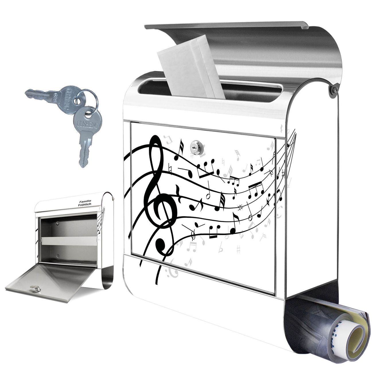 Wandbriefkasten Edelstahl Motiv Musikalische Noten