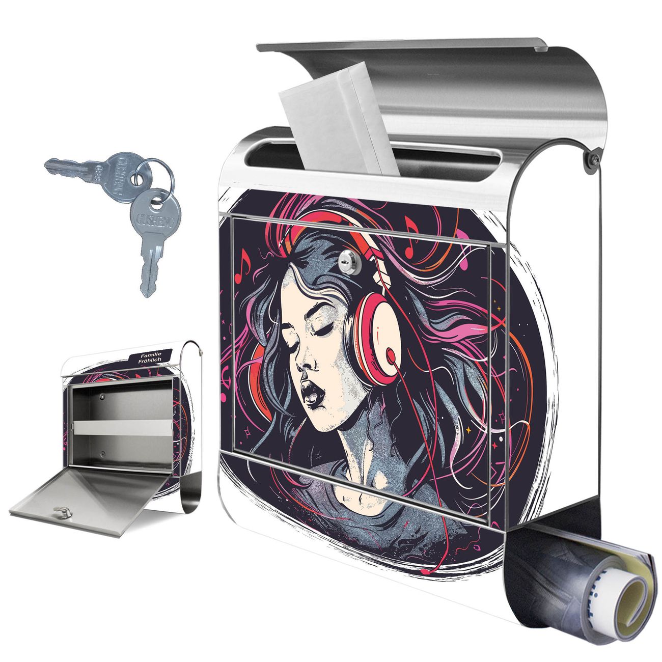 Wandbriefkasten Edelstahl Motiv Musikalischer Traum