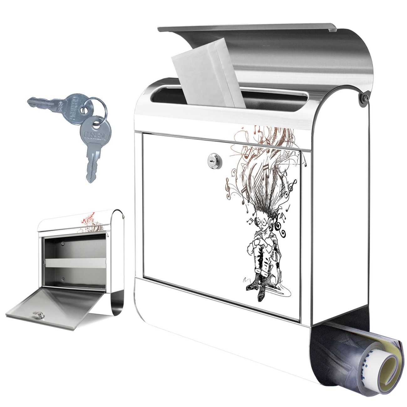 Wandbriefkasten Edelstahl Motiv Musikträume Illustration