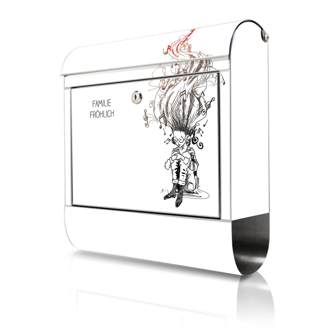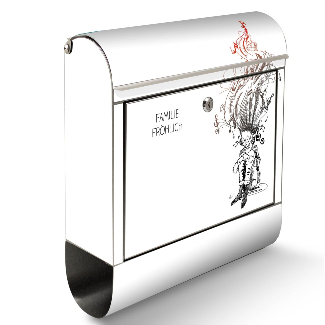 Wandbriefkasten Edelstahl Motiv Musikträume Illustration