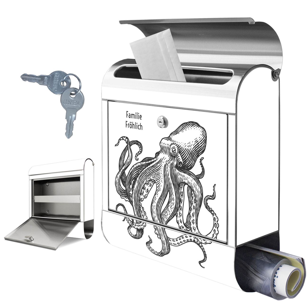 Wandbriefkasten Edelstahl Motiv Oktopus 9