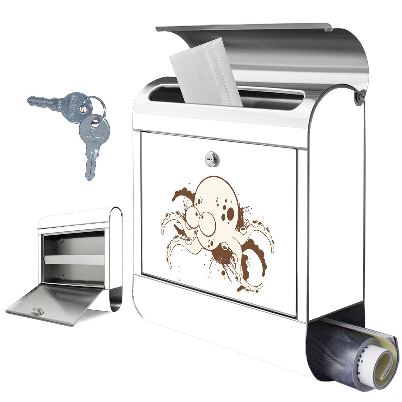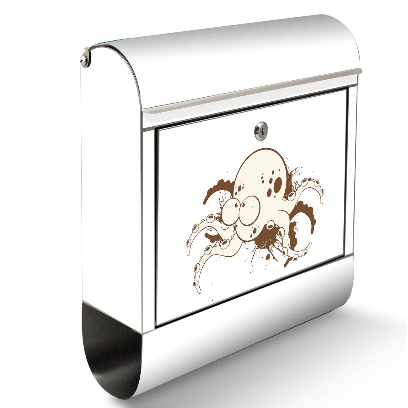Wandbriefkasten Edelstahl Motiv Oktopus Comic 2