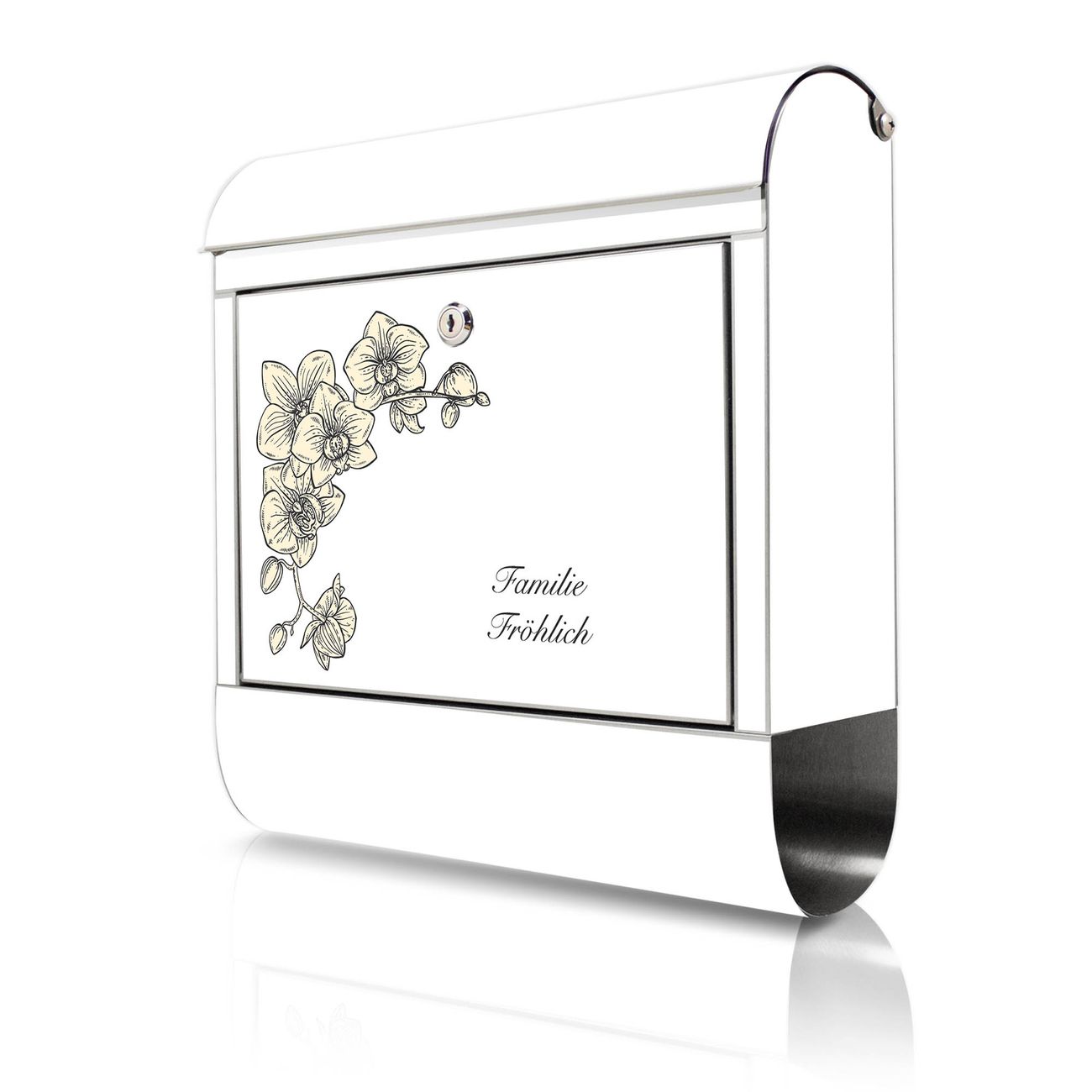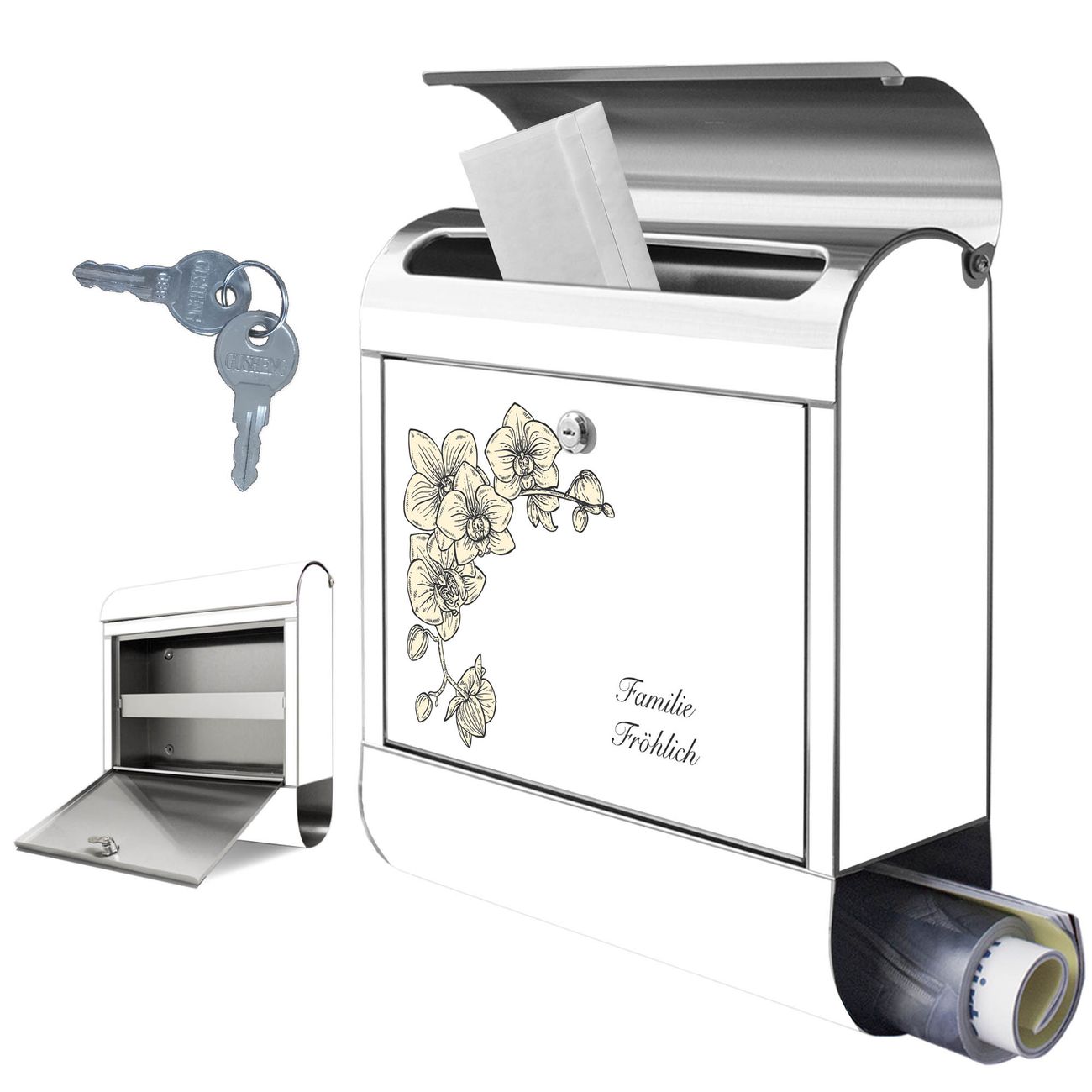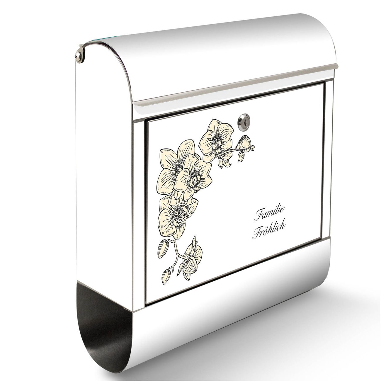 Wandbriefkasten Edelstahl Motiv Orchideenzeichnung