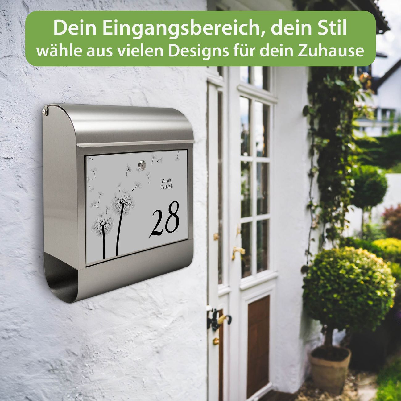 Wandbriefkasten Edelstahl Motiv Pusteblume GS