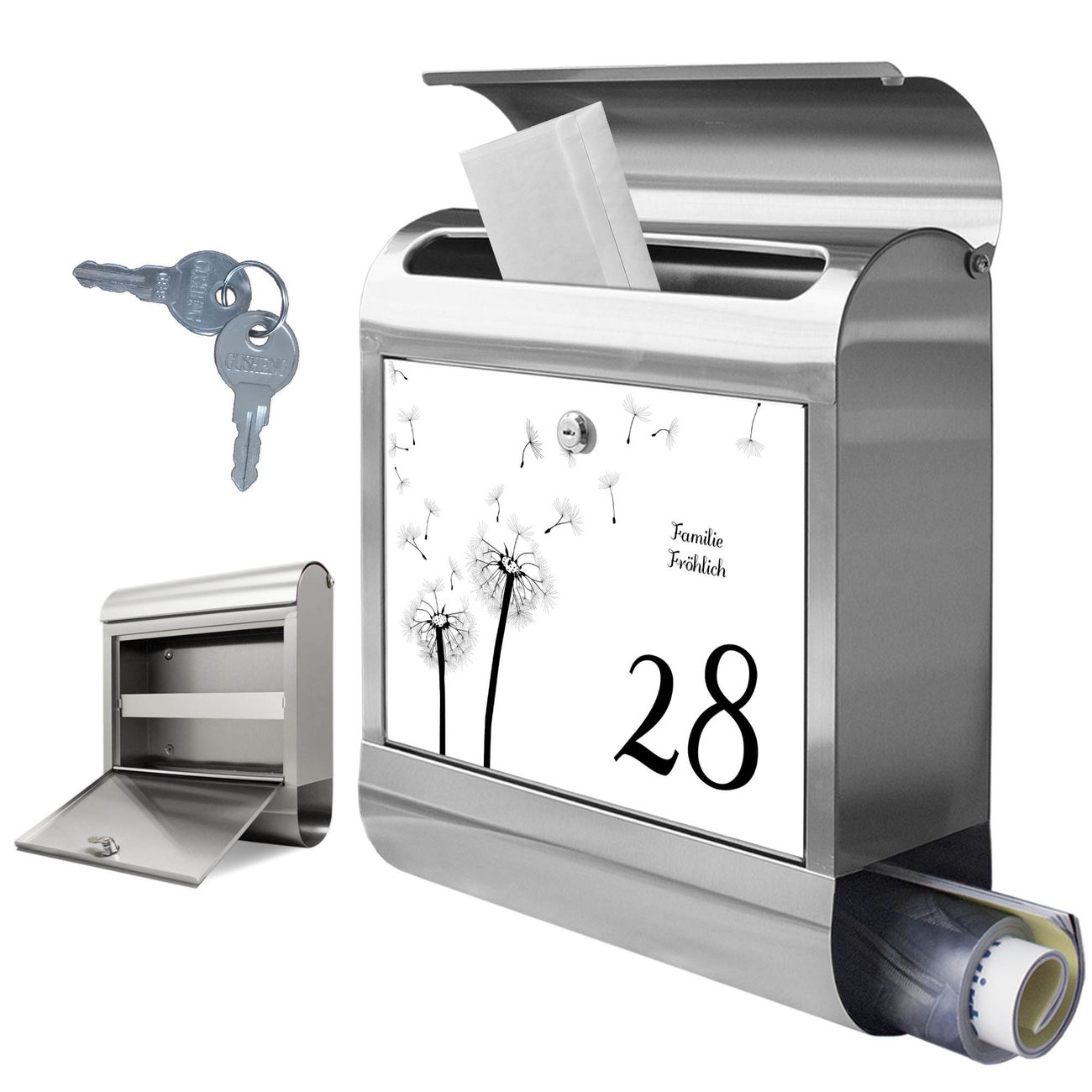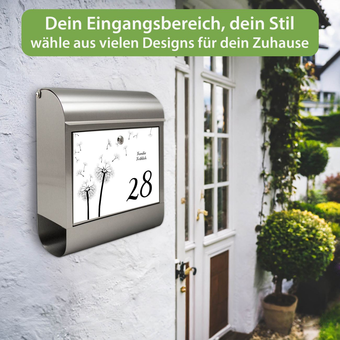Wandbriefkasten Edelstahl Motiv Pusteblume WS