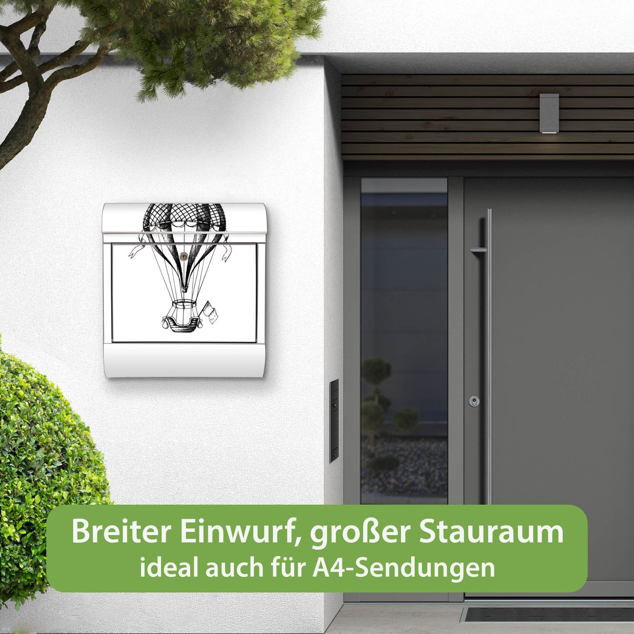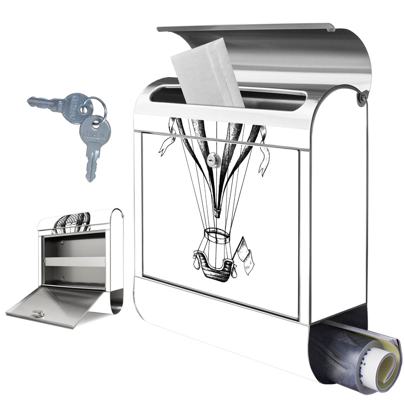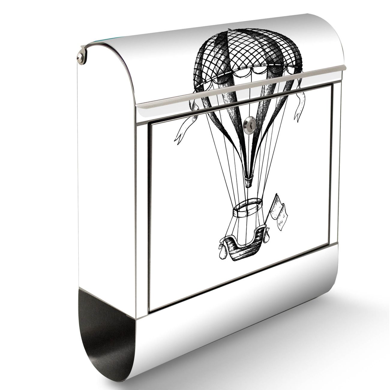 Wandbriefkasten Edelstahl Motiv Retro Heißluftballon