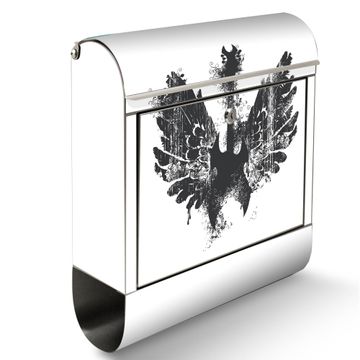 FUNKTION: Der banjado Edelstahl Briefkasten mit Motiv Motiv Rock Gitarre Flügel bietet Ihnen mit seinem Fassungsvermögen genügend Platz auch für große A4 Sendungen. Das integrierte Zeitungsfach eignet sich hervorragend um unkompliziert die Tageszeitung zu fassen. Auf Wunsch können Sie bei uns den passenden Ständer kaufen und so aus dem Wandbriefkasten einen Standbriefkasten machen. DESIGN: Der Motivbriefkasten hat ein sehr ansprechendes und ausgefallenes Design, damit entlocken Sie Ihren Nachbarn und dem Postboten ein Lächeln. Heben Sie Sich ab von der tristen grauen Masse ohne auf Funktionalität zu verzichten. DETAILS: Der Design Briefkasten mit Motiv Motiv Rock Gitarre Flügel besteht aus hochwertigem 18/0 Edelstahl. Das Motiv besteht aus einer wetter- und UV-resistenten Folie, die mit einem Schutzlaminat überzogen ist. Der Briefkasten wird mit Montagematerial und zwei Schlüsseln geliefert. NUTZEN: Sie können diesen Briefkasten sowohl als Wandbriefkasten montieren oder einen passenden Ständer auswählen und als Standbriefkasten einbetonieren. Die Größe bietet genügend Platz für Sendungen aller Art, das hochwertige Edelstahl ist rostfrei und die Motivfolie absolut wetterfest. SCHUTZ: Um Ihre Post optimal vor Witterungseinflüssen wie Starkregen zu schützen, empfehlen wir, den Briefkasten geschützt anzubringen. BANJADO: Ihr Briefkasten wird in Sachsen in einer kleinen Manufaktur von Hand veredelt. Die Motivfolie ist lösungsmittelfrei und schutzlaminiert, dies sorgt für einen langen Halt. Wir legen großen Wert auf die Verbindung von Funktionalität und Design. Sie erhalten Handarbeit aus Sachsen.