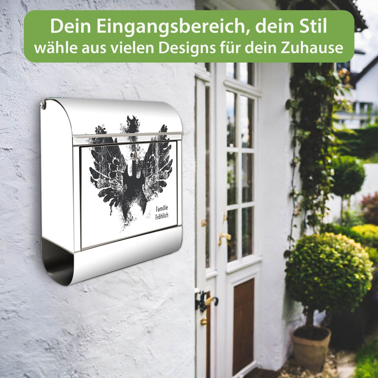 Wandbriefkasten Edelstahl Motiv Rock Gitarre Flügel