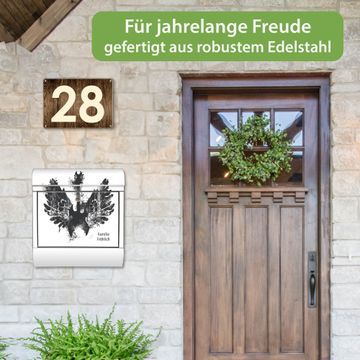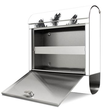 FUNKTION: Der banjado Edelstahl Briefkasten mit Motiv Motiv Rock Gitarre Flügel bietet Ihnen mit seinem Fassungsvermögen genügend Platz auch für große A4 Sendungen. Das integrierte Zeitungsfach eignet sich hervorragend um unkompliziert die Tageszeitung zu fassen. Auf Wunsch können Sie bei uns den passenden Ständer kaufen und so aus dem Wandbriefkasten einen Standbriefkasten machen. DESIGN: Der Motivbriefkasten hat ein sehr ansprechendes und ausgefallenes Design, damit entlocken Sie Ihren Nachbarn und dem Postboten ein Lächeln. Heben Sie Sich ab von der tristen grauen Masse ohne auf Funktionalität zu verzichten. DETAILS: Der Design Briefkasten mit Motiv Motiv Rock Gitarre Flügel besteht aus hochwertigem 18/0 Edelstahl. Das Motiv besteht aus einer wetter- und UV-resistenten Folie, die mit einem Schutzlaminat überzogen ist. Der Briefkasten wird mit Montagematerial und zwei Schlüsseln geliefert. NUTZEN: Sie können diesen Briefkasten sowohl als Wandbriefkasten montieren oder einen passenden Ständer auswählen und als Standbriefkasten einbetonieren. Die Größe bietet genügend Platz für Sendungen aller Art, das hochwertige Edelstahl ist rostfrei und die Motivfolie absolut wetterfest. SCHUTZ: Um Ihre Post optimal vor Witterungseinflüssen wie Starkregen zu schützen, empfehlen wir, den Briefkasten geschützt anzubringen. BANJADO: Ihr Briefkasten wird in Sachsen in einer kleinen Manufaktur von Hand veredelt. Die Motivfolie ist lösungsmittelfrei und schutzlaminiert, dies sorgt für einen langen Halt. Wir legen großen Wert auf die Verbindung von Funktionalität und Design. Sie erhalten Handarbeit aus Sachsen.