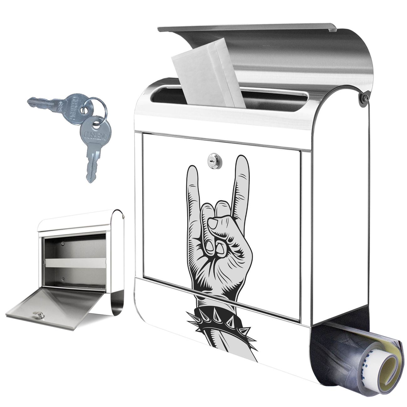 Wandbriefkasten Edelstahl Motiv Rockgruß