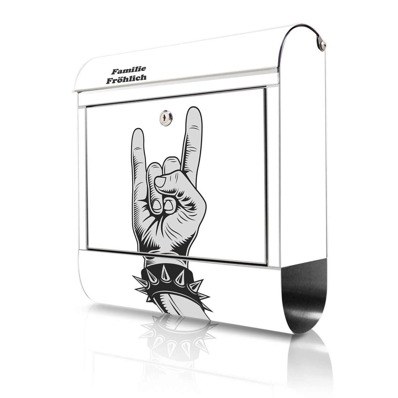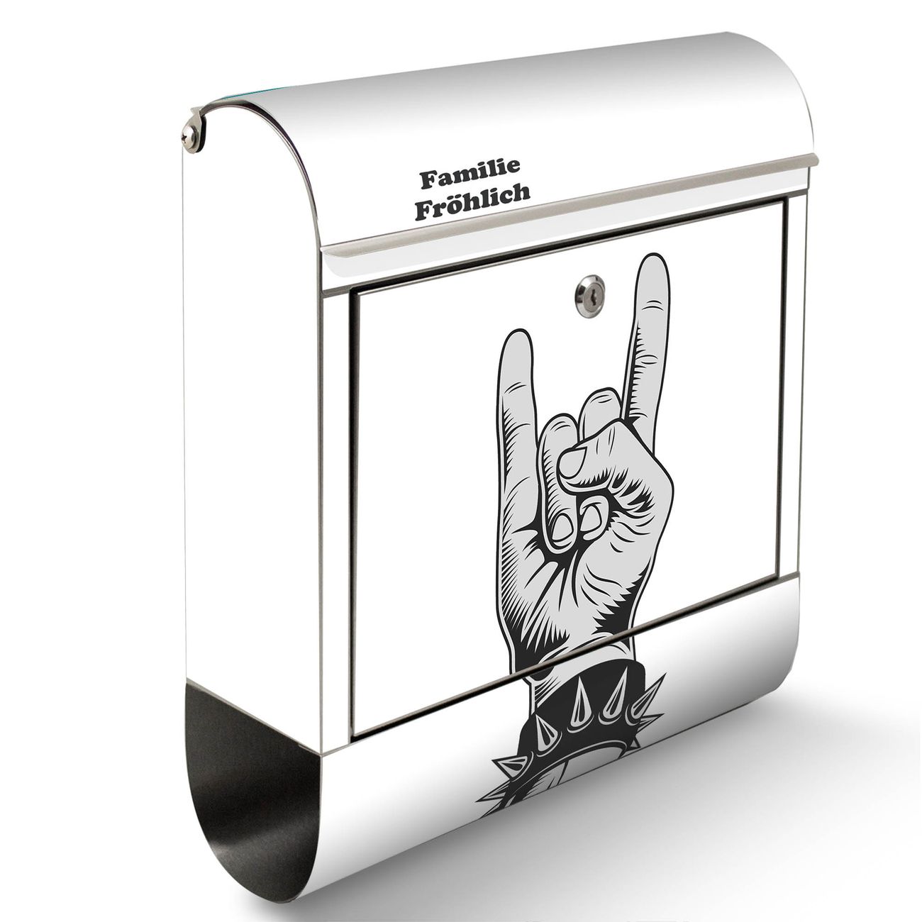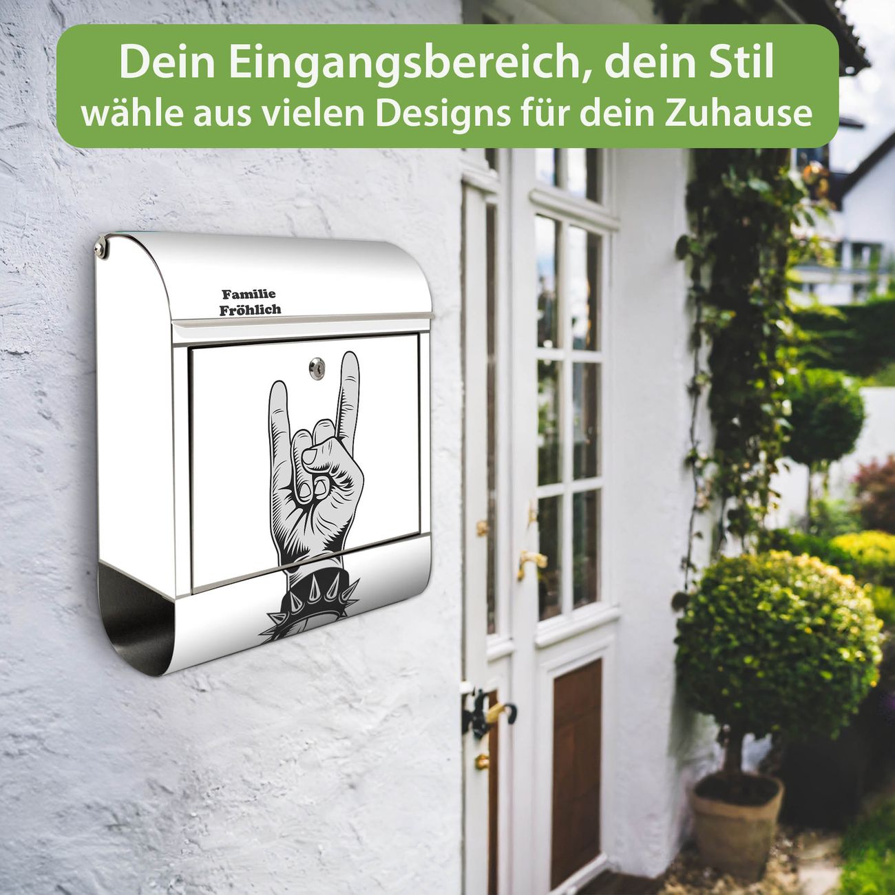 Wandbriefkasten Edelstahl Motiv Rockgruß