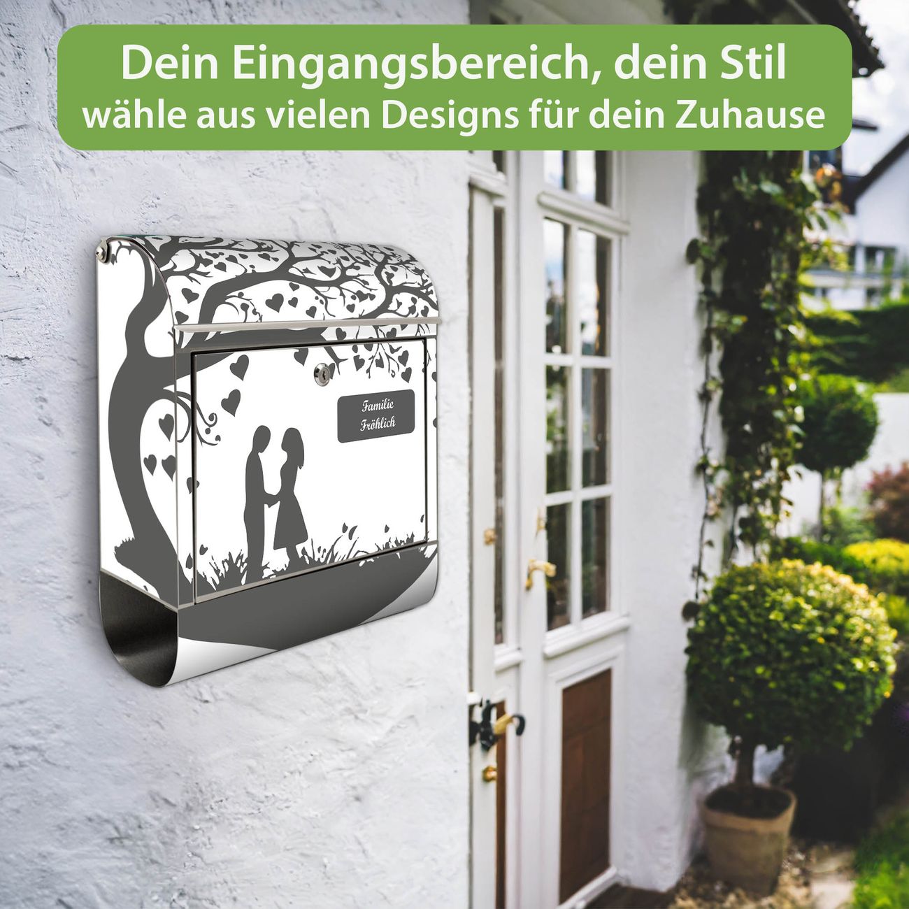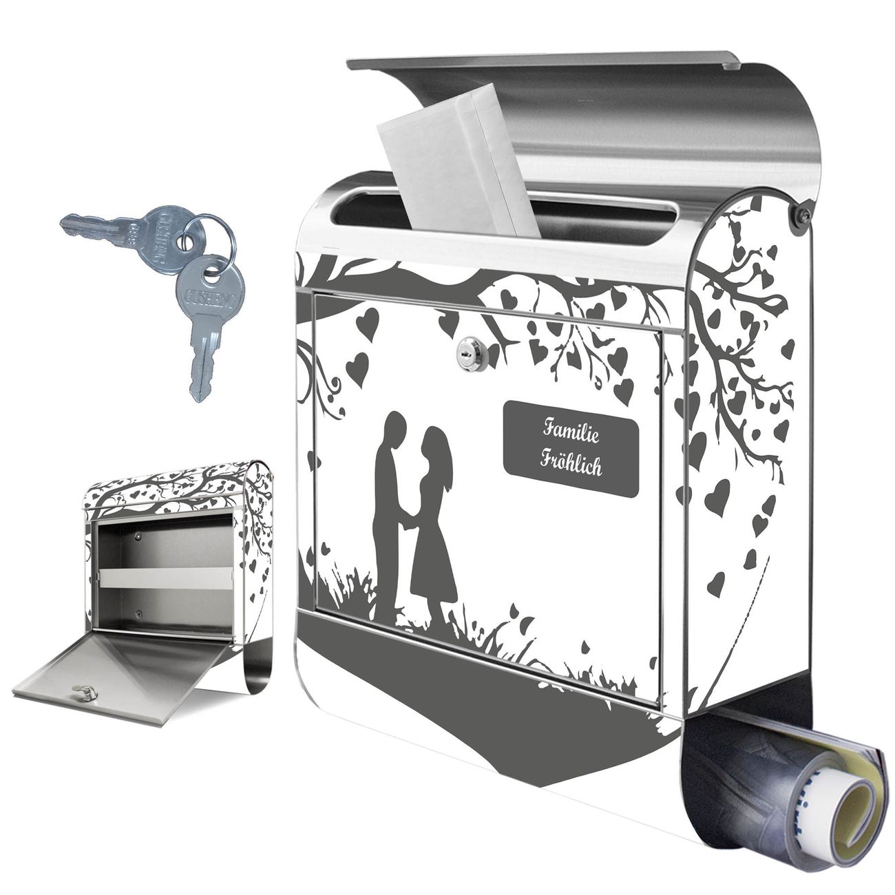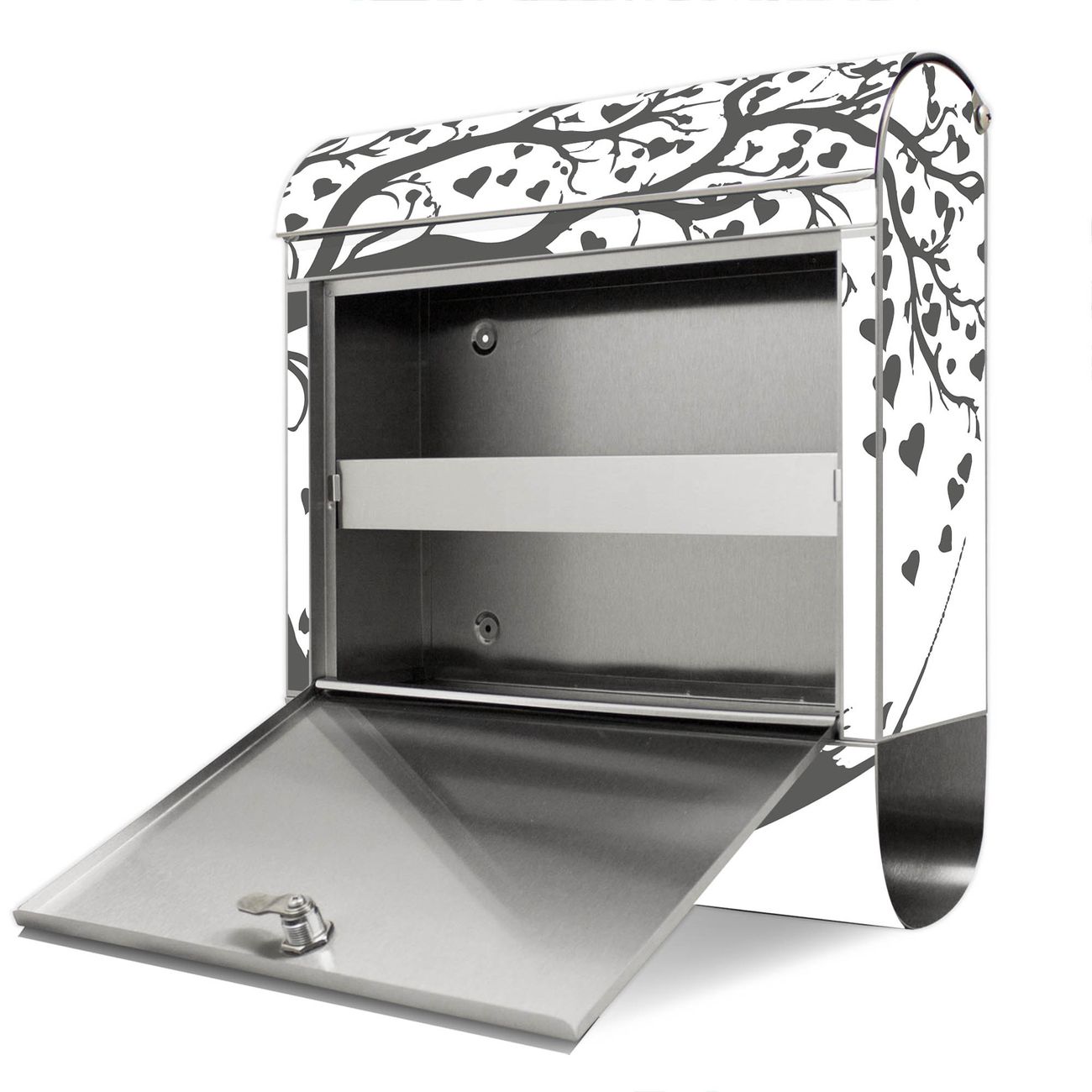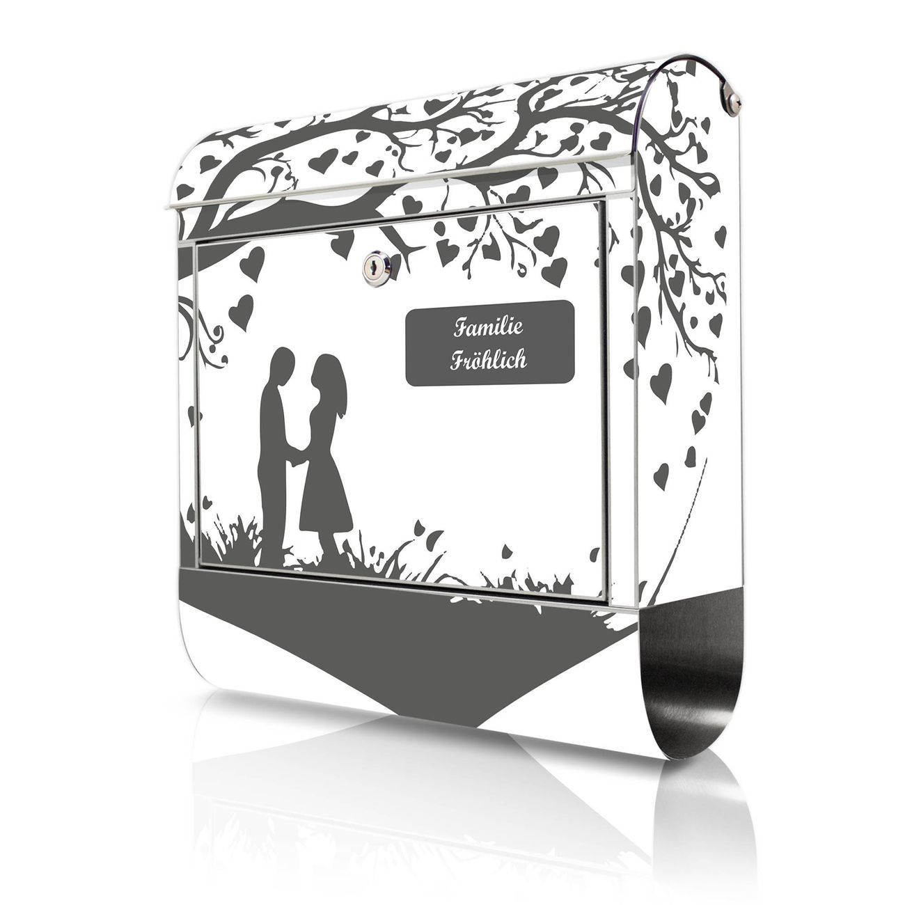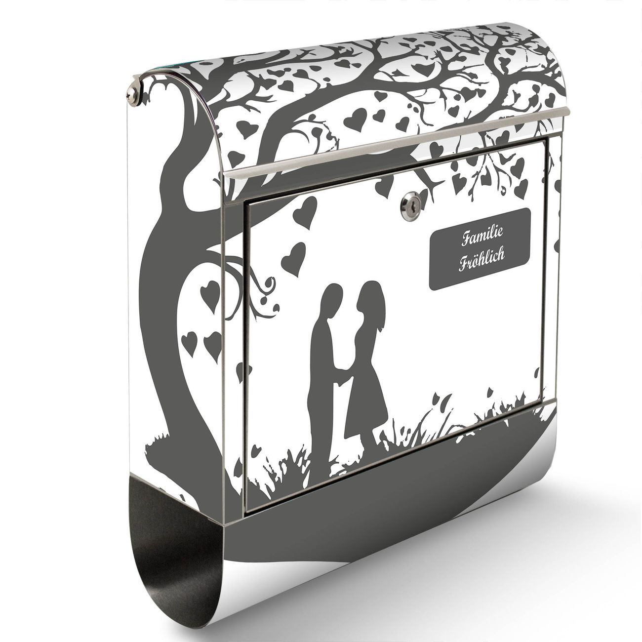 Wandbriefkasten Edelstahl Motiv Romantisches Baumherz Silhouette 2