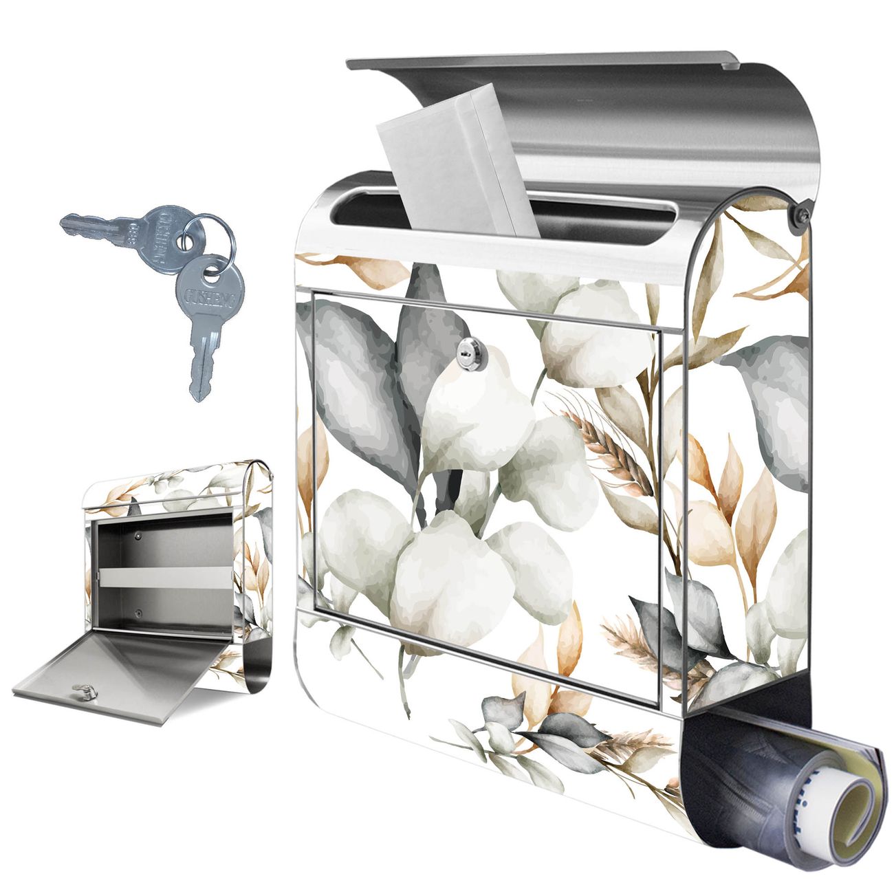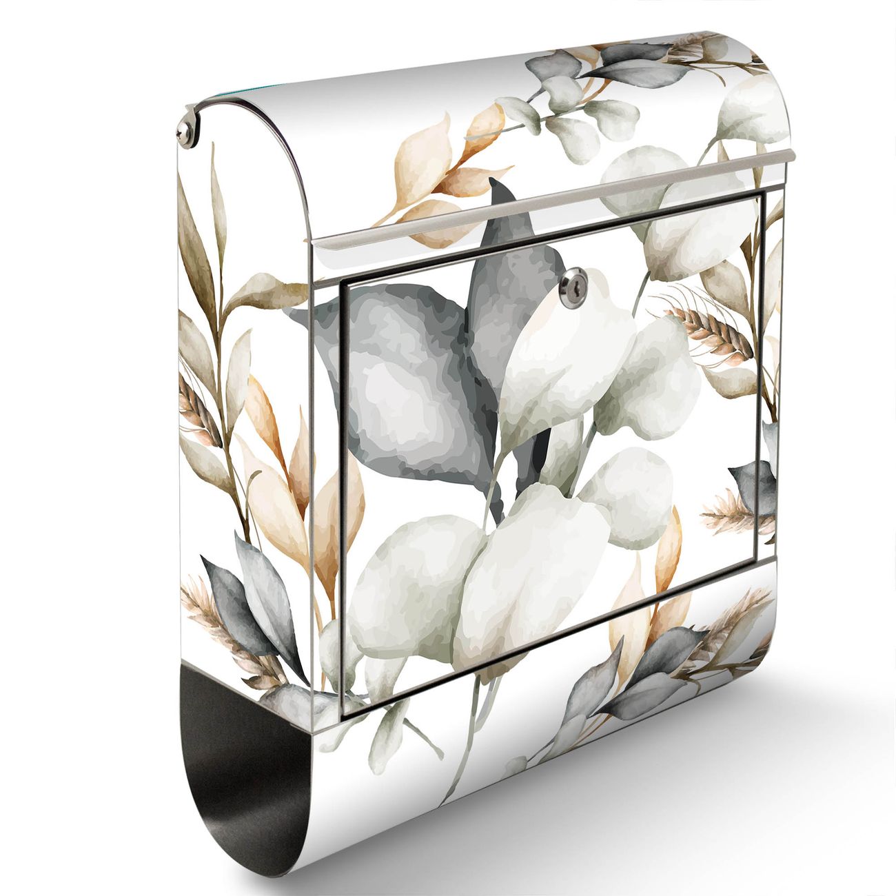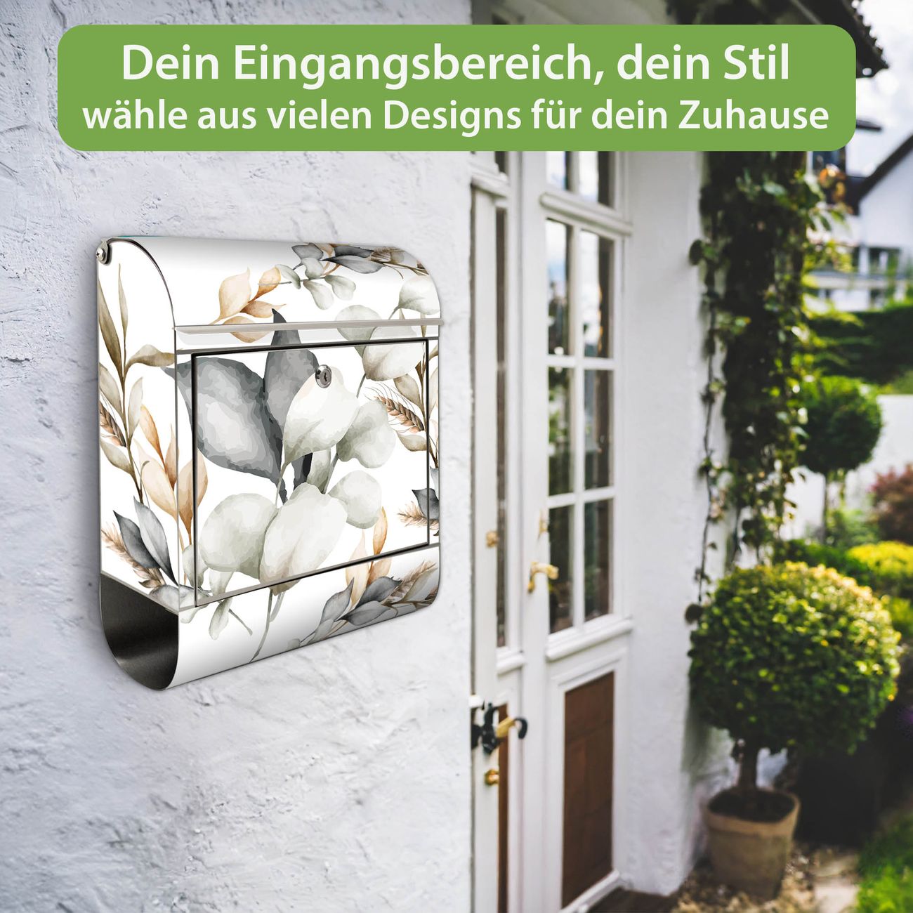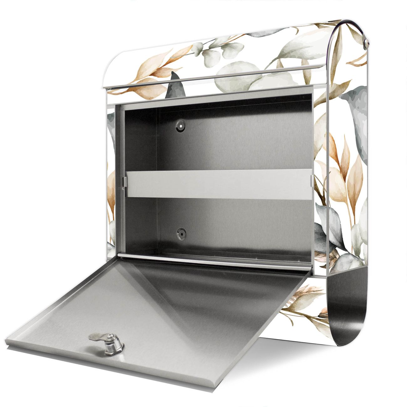 Wandbriefkasten Edelstahl Motiv Sanfte Blätter