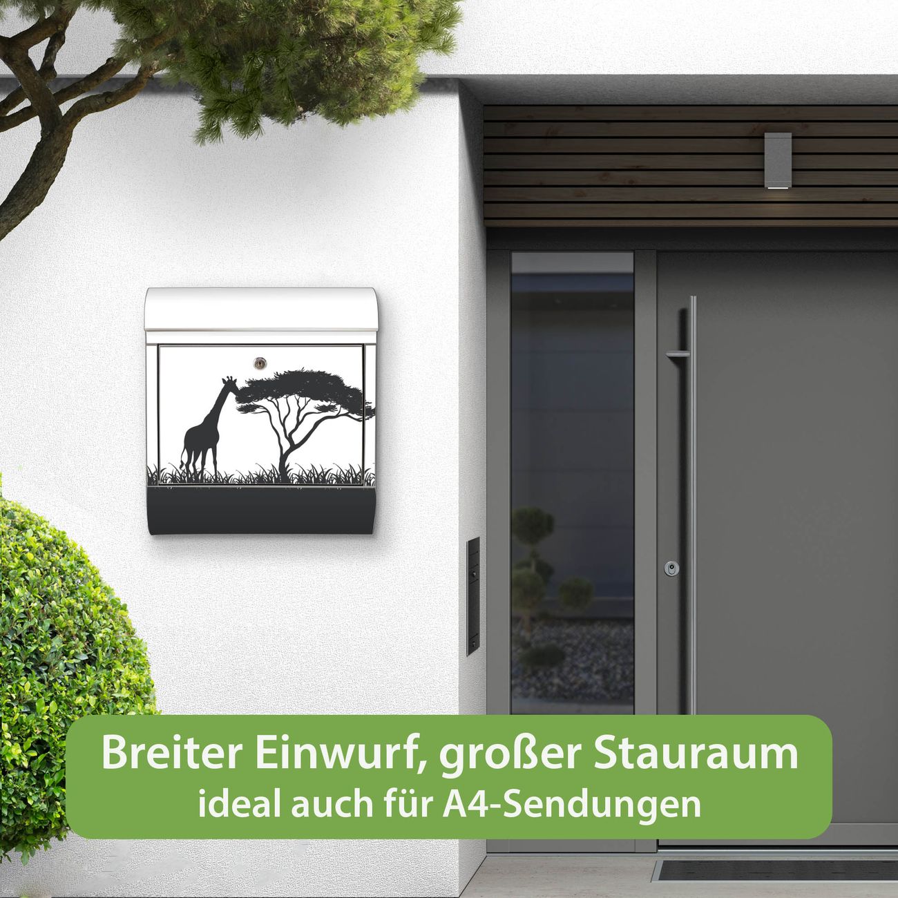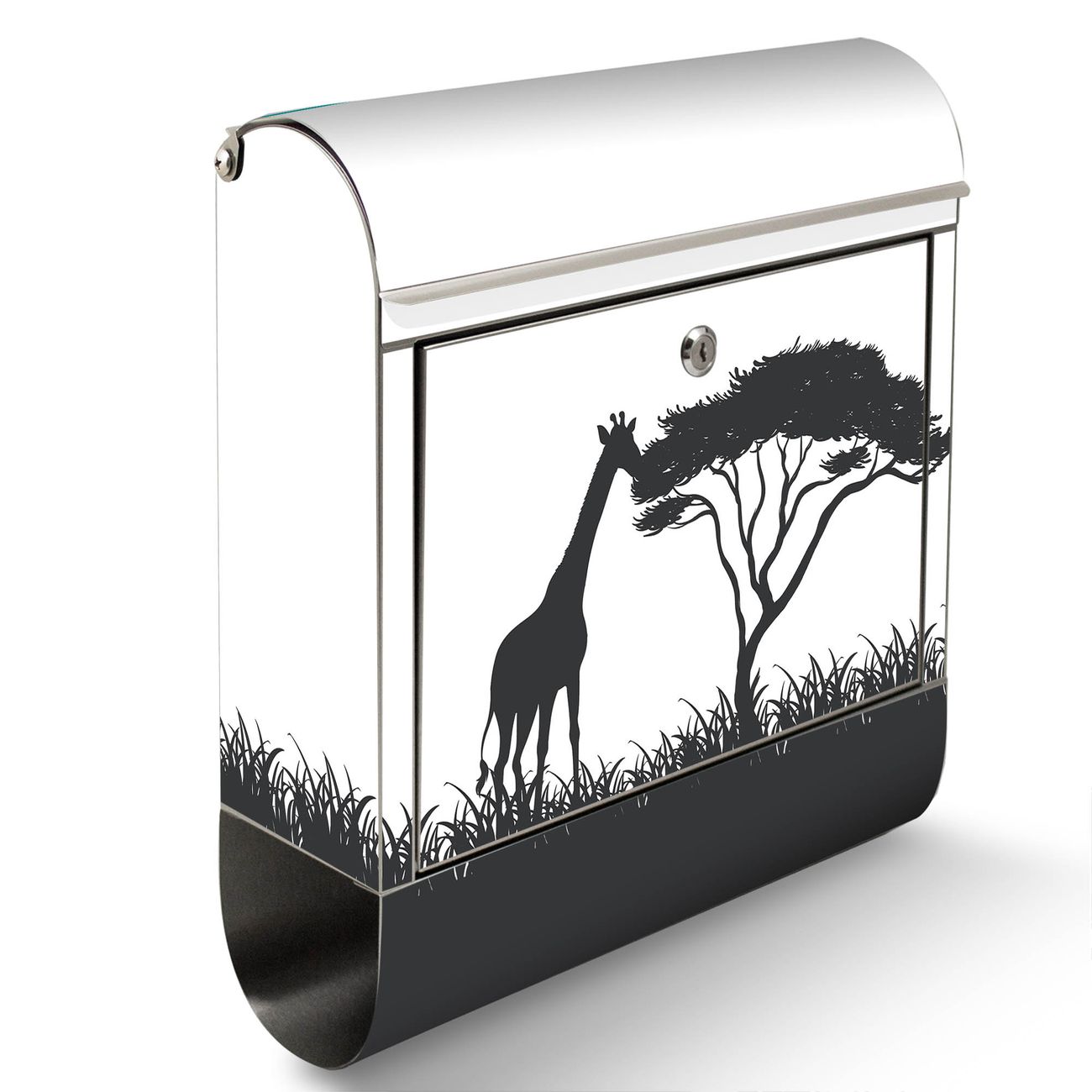 Wandbriefkasten Edelstahl Motiv Savannen-Silhouette