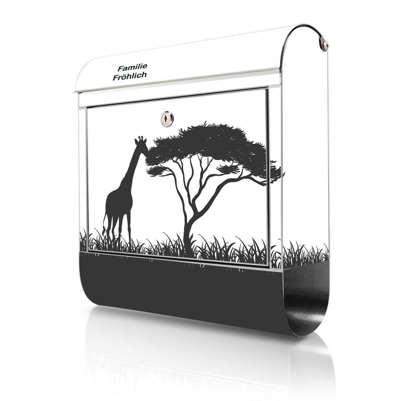 Wandbriefkasten Edelstahl Motiv Savannen-Silhouette