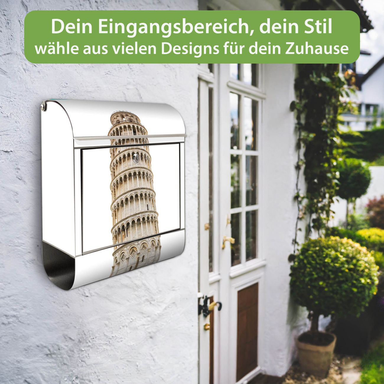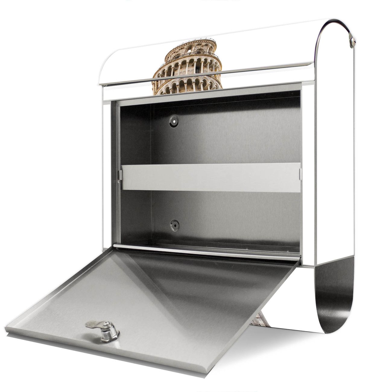 Wandbriefkasten Edelstahl Motiv Schiefer Turm von Pisa