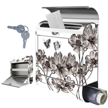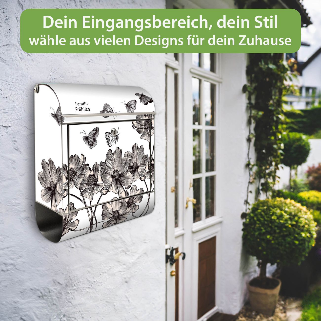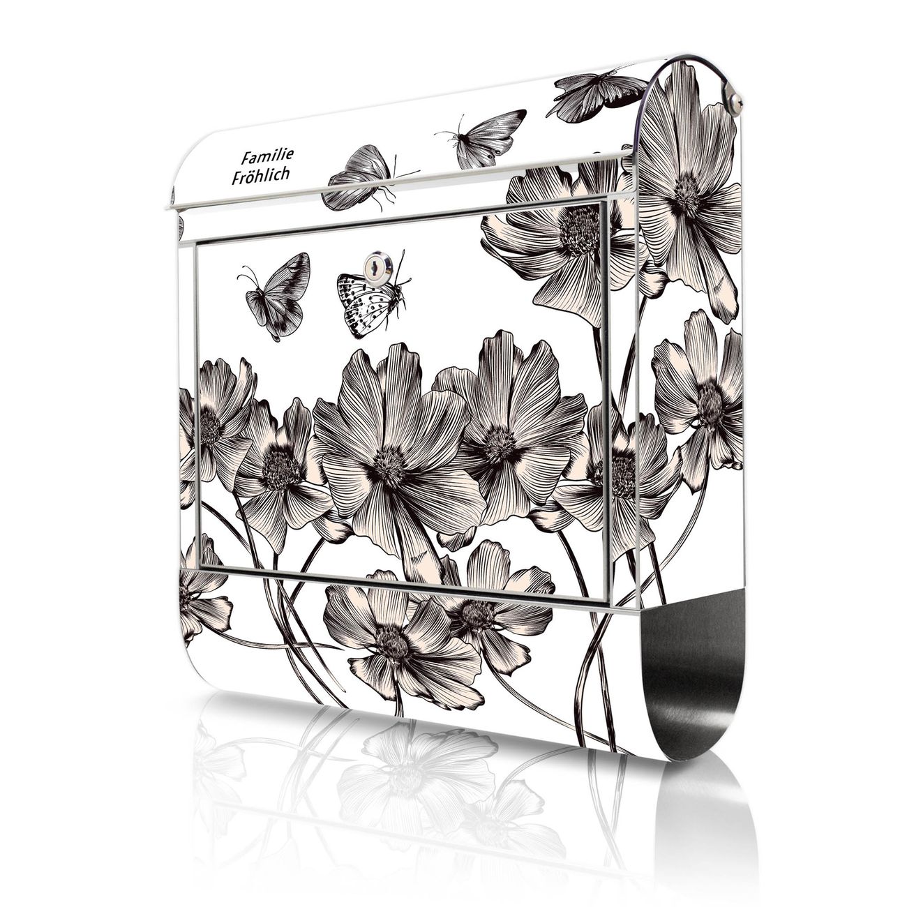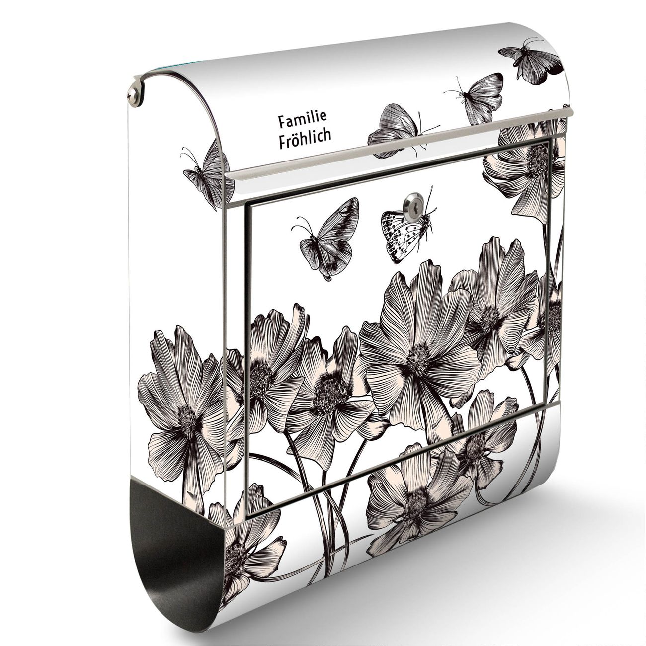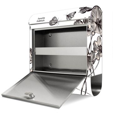 Wandbriefkasten Edelstahl Motiv Schmetterlingsgarten