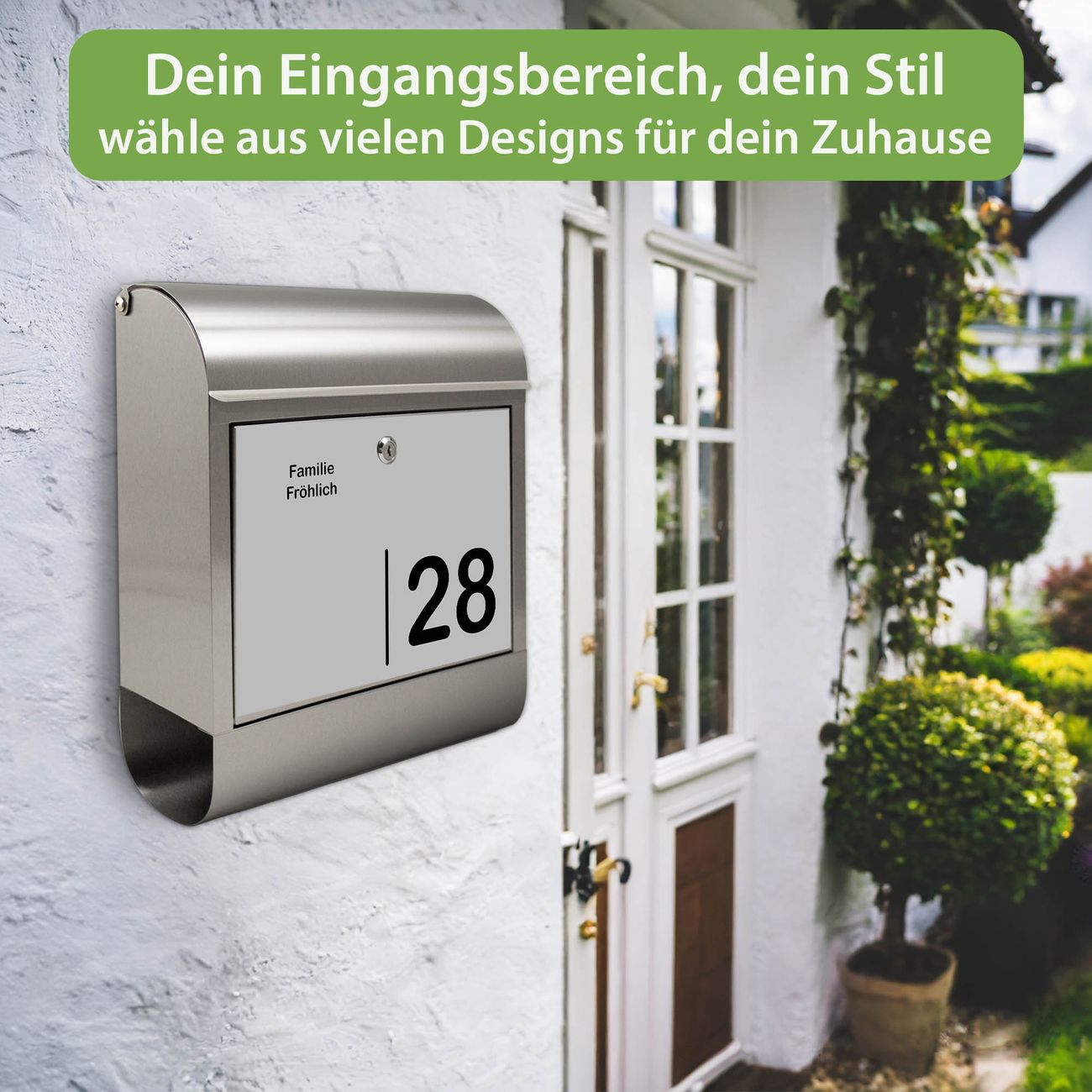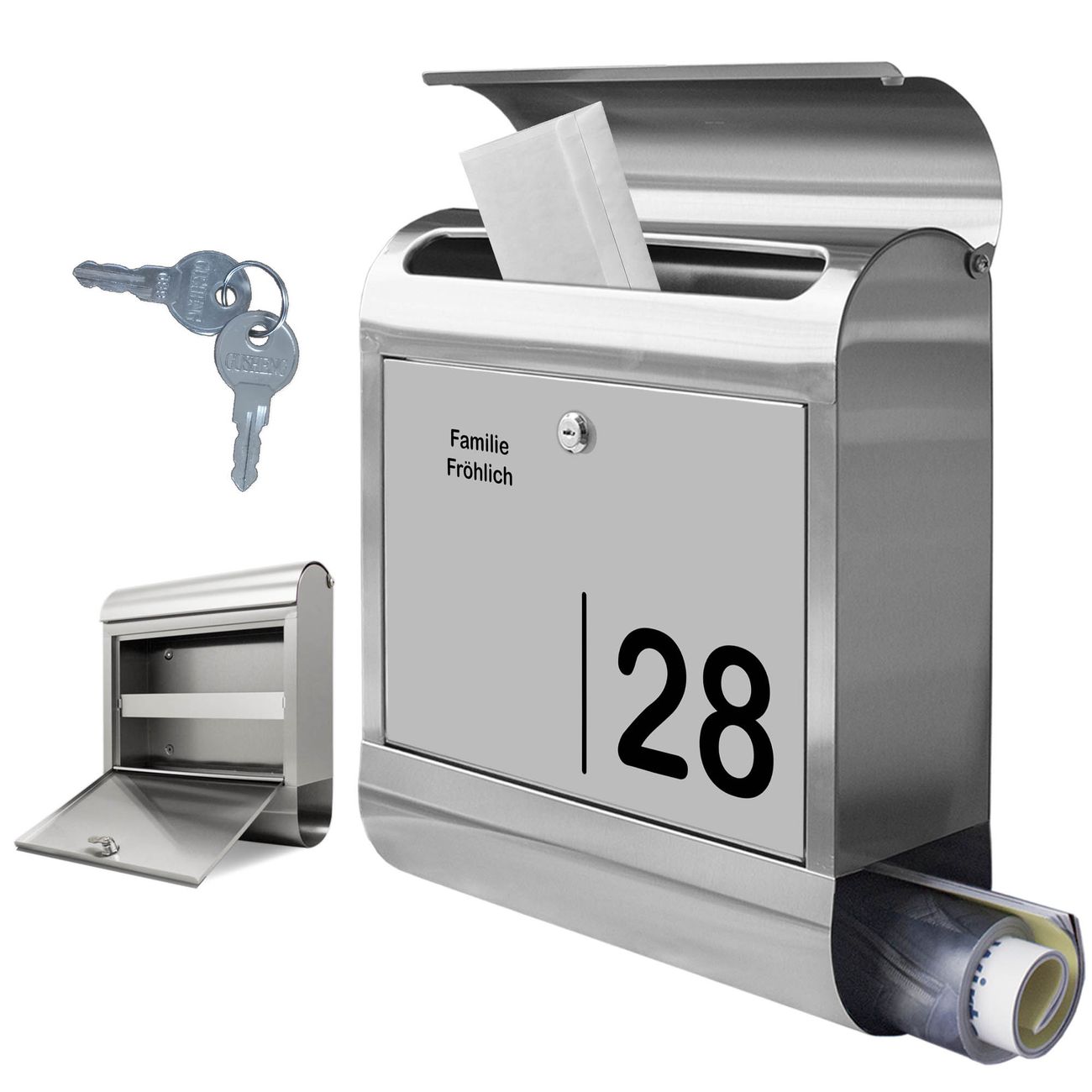 Wandbriefkasten Edelstahl Motiv Schwarz auf Grau 2