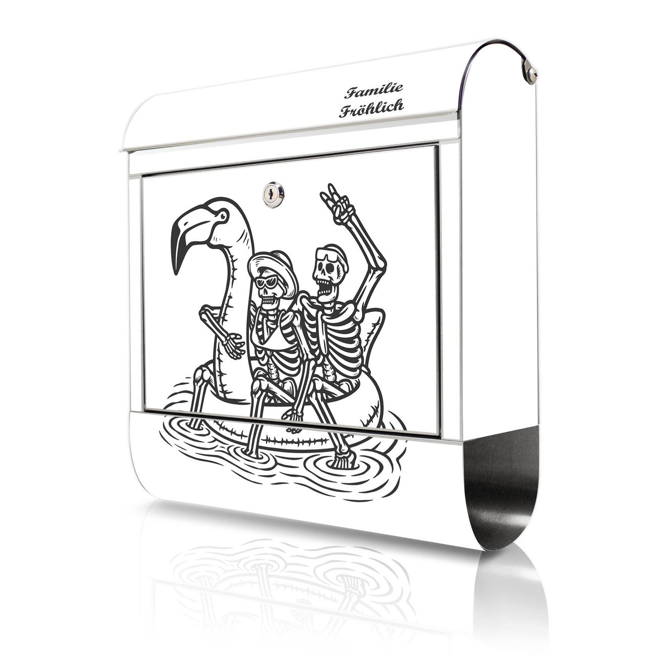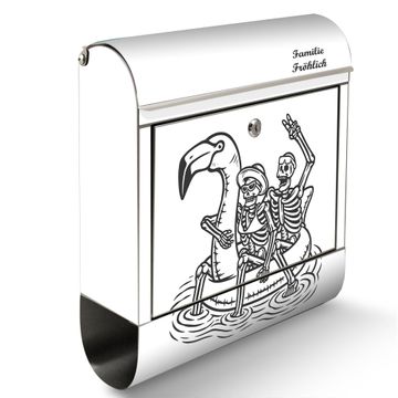 Wandbriefkasten Edelstahl Motiv Skelette mit Flamingoschwimmring 2