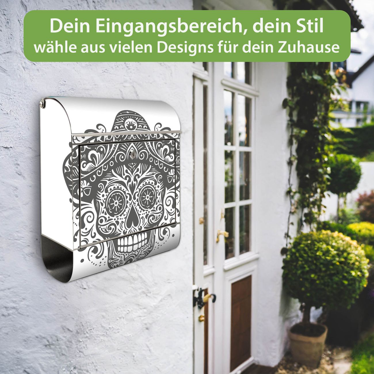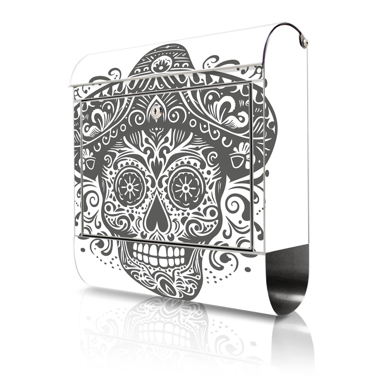 Wandbriefkasten Edelstahl Motiv Sombrero Totenkopf