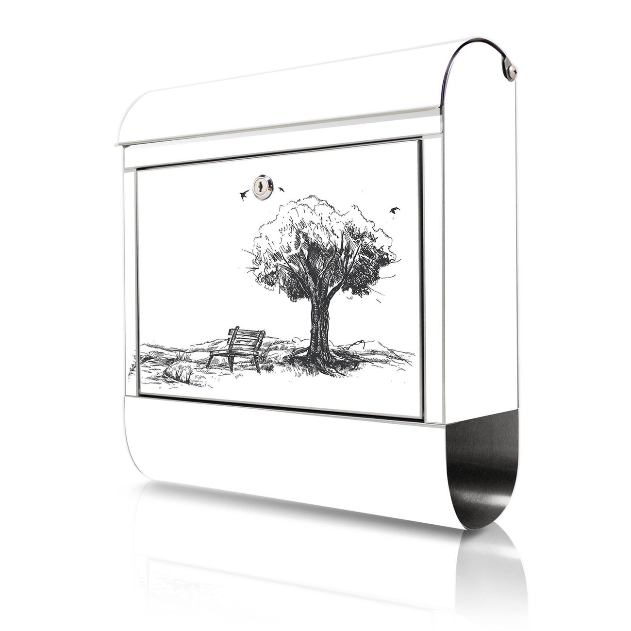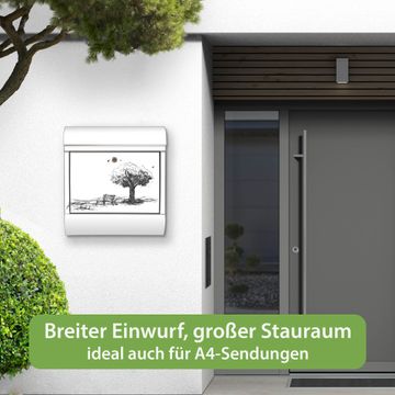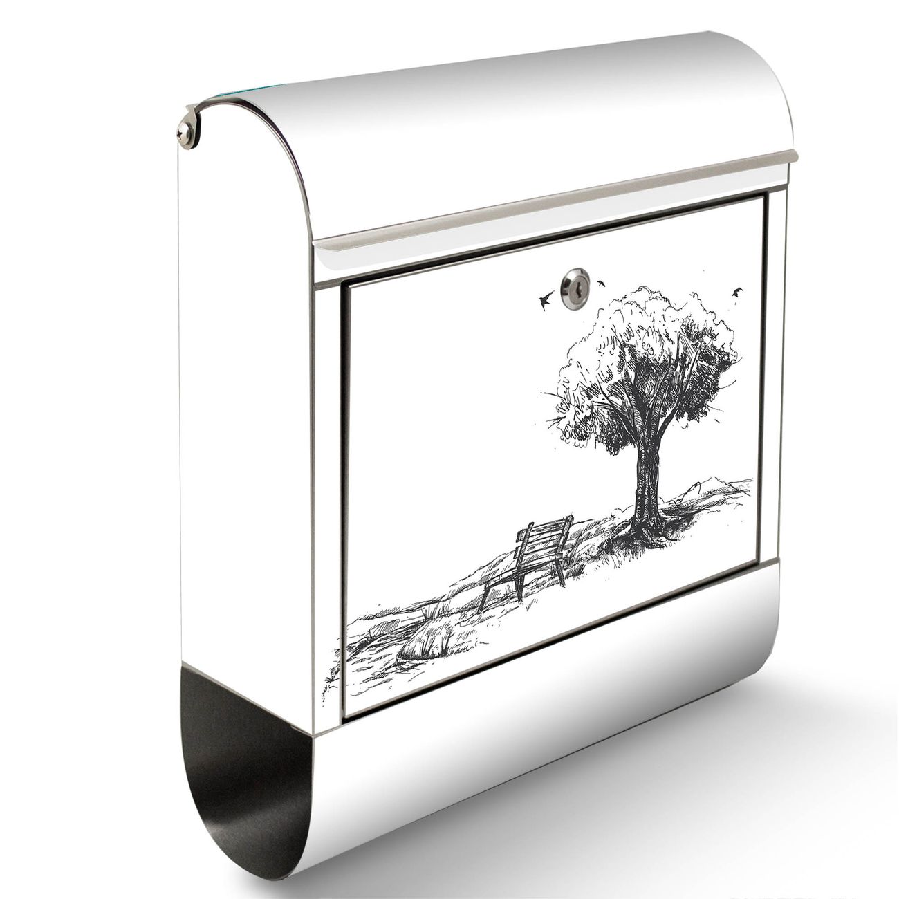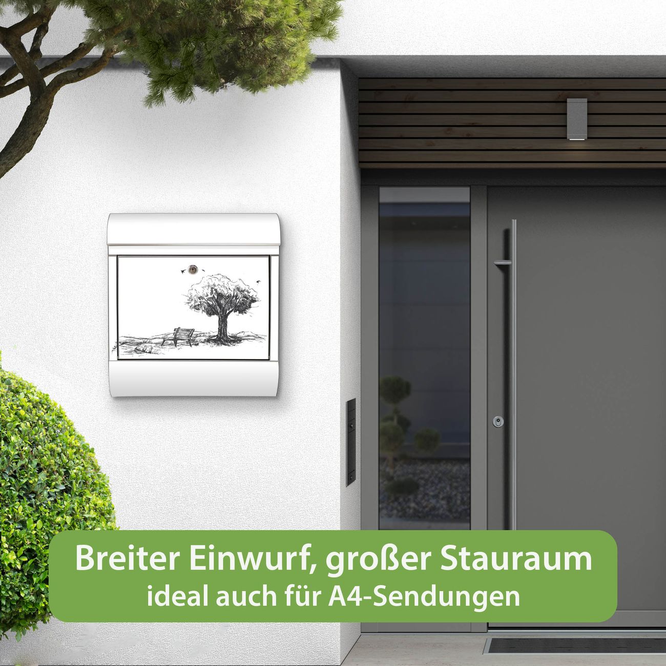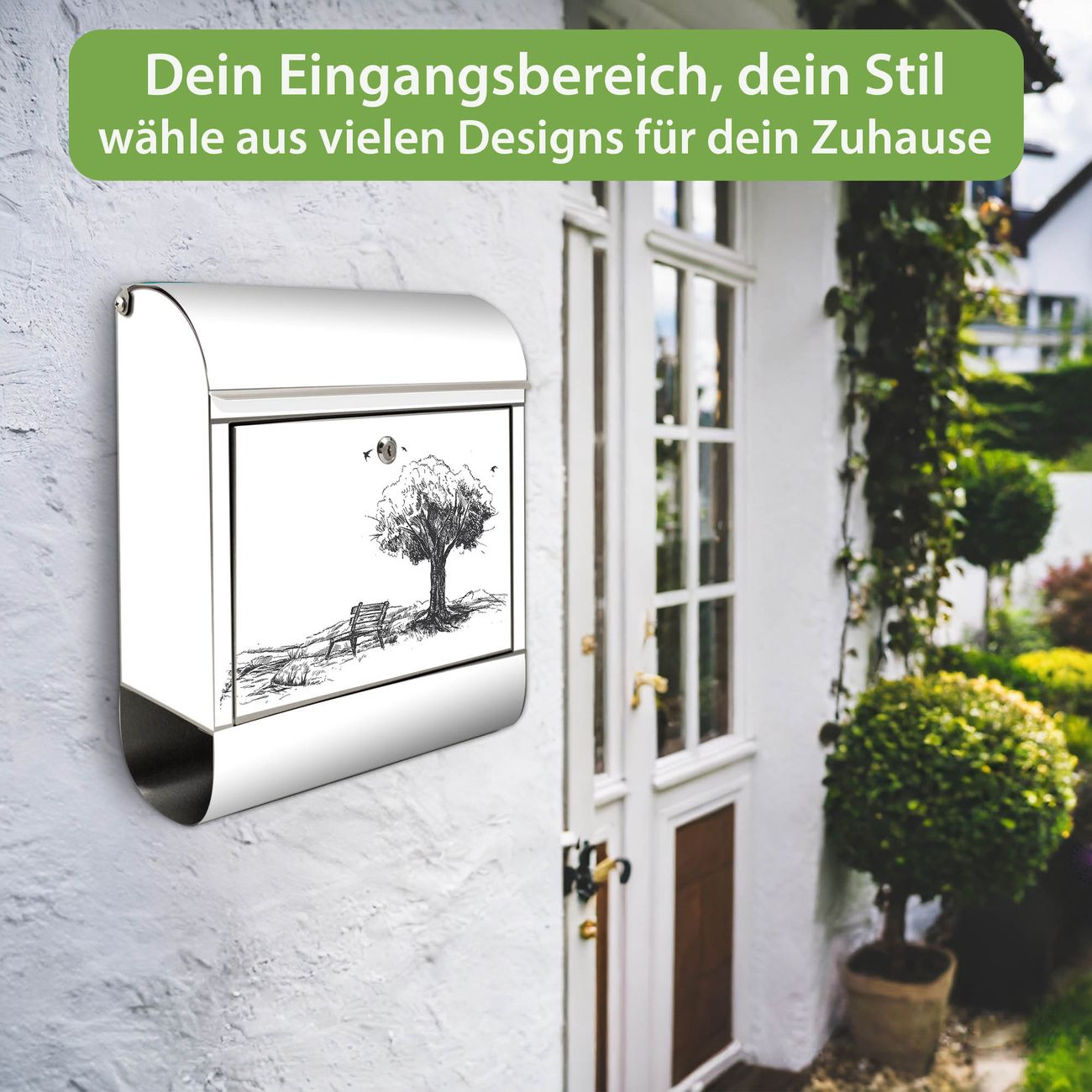 Wandbriefkasten Edelstahl Motiv Sommerliche Parkszene
