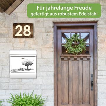 FUNKTION: Der banjado Edelstahl Briefkasten mit Motiv Motiv Sommerliche Parkszene bietet Ihnen mit seinem Fassungsvermögen genügend Platz auch für große A4 Sendungen. Das integrierte Zeitungsfach eignet sich hervorragend um unkompliziert die Tageszeitung zu fassen. Auf Wunsch können Sie bei uns den passenden Ständer kaufen und so aus dem Wandbriefkasten einen Standbriefkasten machen. DESIGN: Der Motivbriefkasten hat ein sehr ansprechendes und ausgefallenes Design, damit entlocken Sie Ihren Nachbarn und dem Postboten ein Lächeln. Heben Sie Sich ab von der tristen grauen Masse ohne auf Funktionalität zu verzichten. DETAILS: Der Design Briefkasten mit Motiv Motiv Sommerliche Parkszene besteht aus hochwertigem 18/0 Edelstahl. Das Motiv besteht aus einer wetter- und UV-resistenten Folie, die mit einem Schutzlaminat überzogen ist. Der Briefkasten wird mit Montagematerial und zwei Schlüsseln geliefert. NUTZEN: Sie können diesen Briefkasten sowohl als Wandbriefkasten montieren oder einen passenden Ständer auswählen und als Standbriefkasten einbetonieren. Die Größe bietet genügend Platz für Sendungen aller Art, das hochwertige Edelstahl ist rostfrei und die Motivfolie absolut wetterfest. SCHUTZ: Um Ihre Post optimal vor Witterungseinflüssen wie Starkregen zu schützen, empfehlen wir, den Briefkasten geschützt anzubringen. BANJADO: Ihr Briefkasten wird in Sachsen in einer kleinen Manufaktur von Hand veredelt. Die Motivfolie ist lösungsmittelfrei und schutzlaminiert, dies sorgt für einen langen Halt. Wir legen großen Wert auf die Verbindung von Funktionalität und Design. Sie erhalten Handarbeit aus Sachsen.