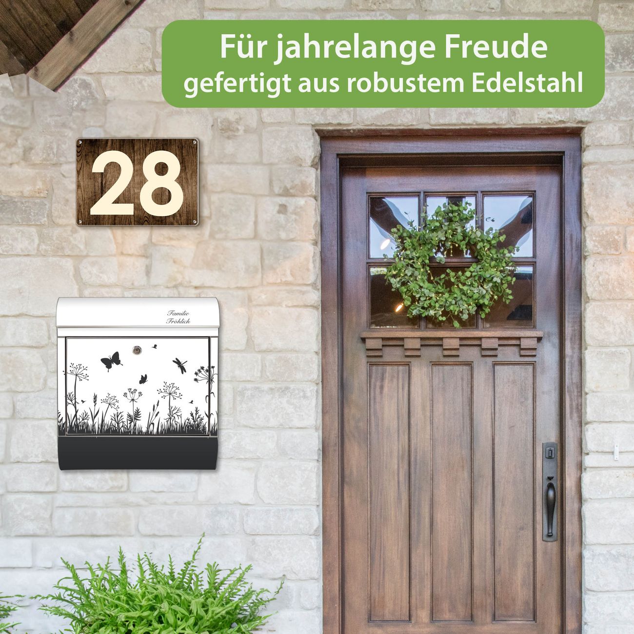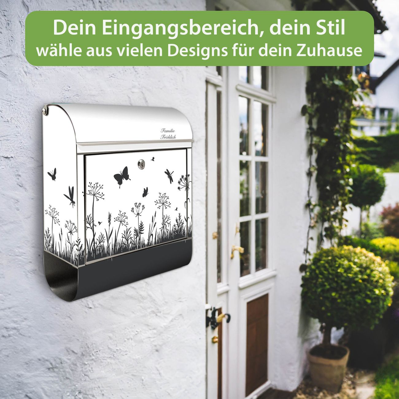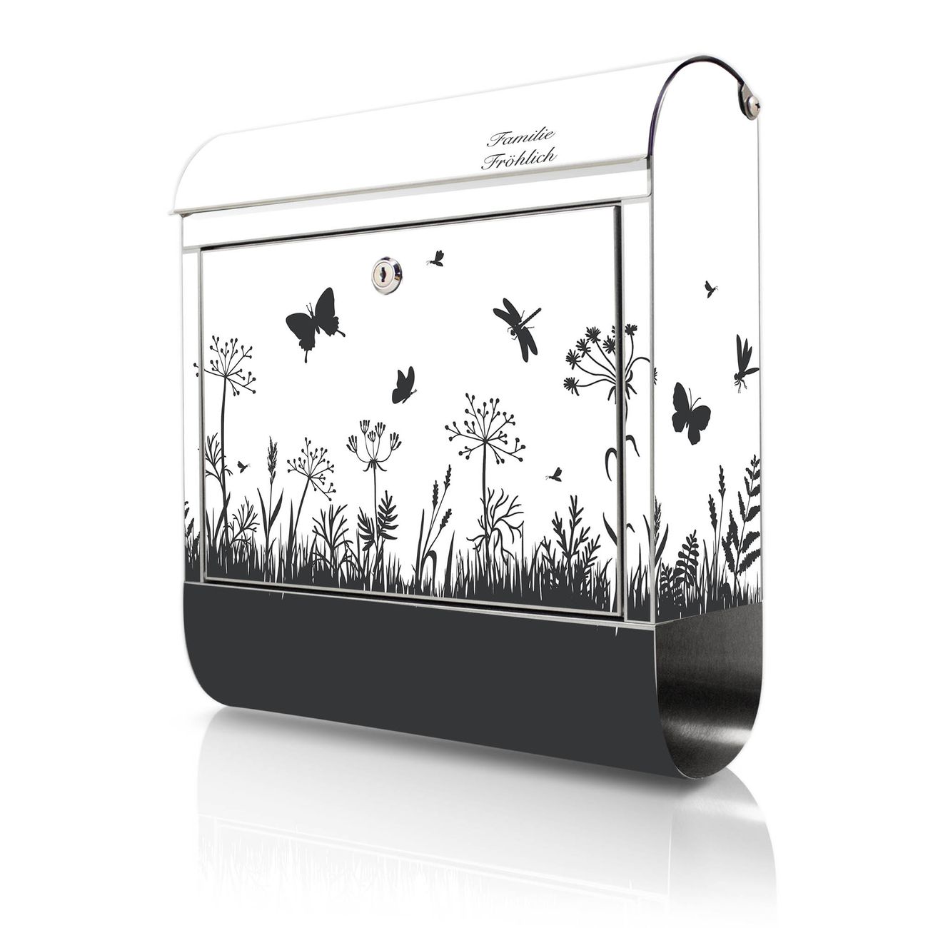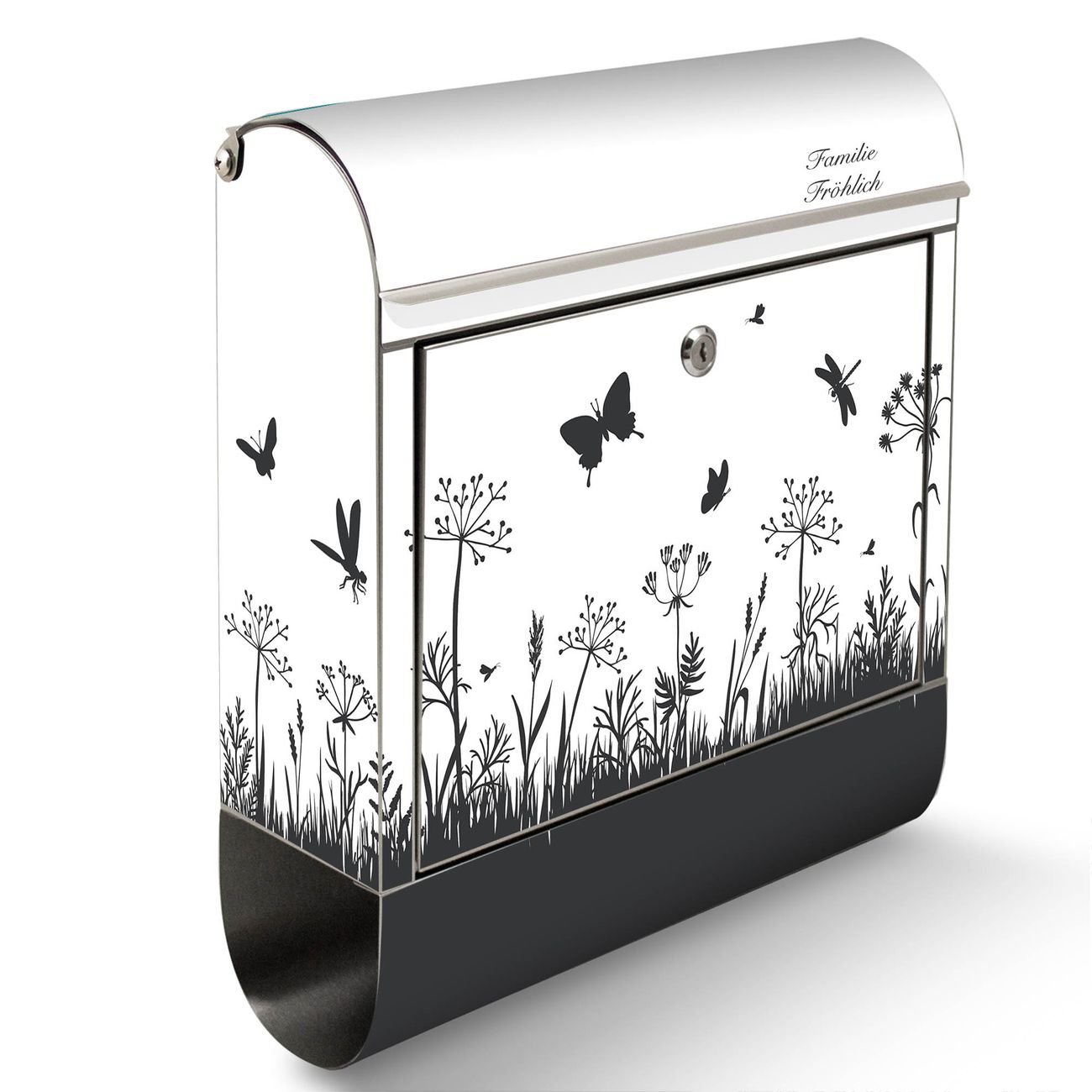 Wandbriefkasten Edelstahl Motiv Sommerwiese Silhouette