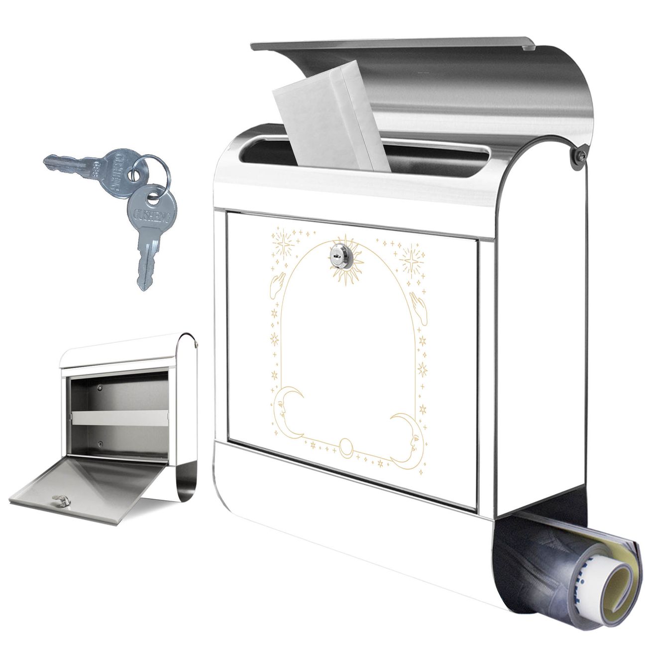 Wandbriefkasten Edelstahl Motiv Sonne und Mond Symbole
